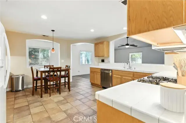 Room for the whole family. Olive drive area 5 bed 2 bath home on a 11,084 lot + RV. Located just steps away from Veterans Elementary school this home offers lots of room inside and out. Includes a large great room with vaulted ceilings , double ceiling fans, double doors with built in blinds and wood look tile flooring. The eat in kitchen includes tile flooring, wood cabinetry, tile counters, built in appliances and a food pantry. Home includes indoor laundry, central a/c, ceiling fans in all bedrooms, blinds and much more. The backyard includes a spacious grass area, patio area, storage shed and a large area perfect for RV access. Other features include tile roofing and a leased solar system to help lower your PG&E costs.