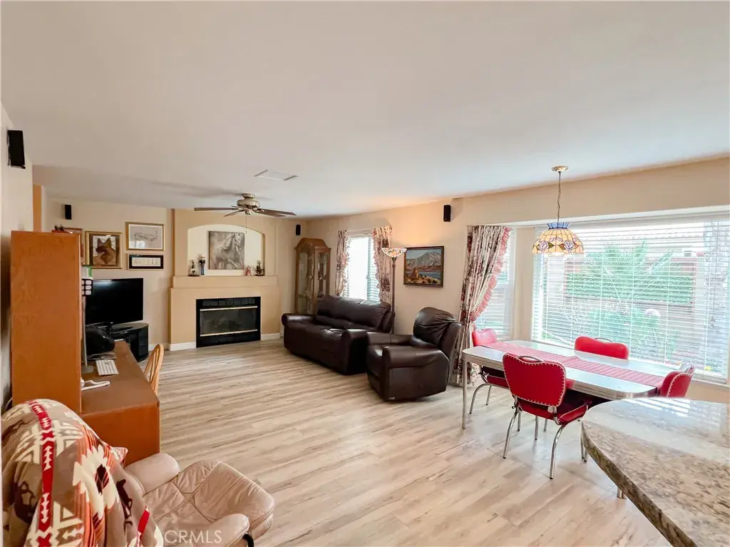 You will love this 4-bedroom, 2-bath home with a 3-car garage. Upon entry, you are welcomed into the formal living room featuring a fireplace with a decorative soffit. The home also offers a formal dining area, a spacious great room with a second fireplace, and an upgraded kitchen with granite countertops, stainless steel appliances, and recessed lighting. Additional highlights include an indoor laundry room, newer flooring, and upgraded bathrooms. The primary bedroom offers direct backyard access and a generous en-suite bath with dual sinks, a separate soaking tub and shower, and a walk-in closet. The backyard is perfect for relaxing and entertaining, featuring a covered patio, an above-ground spa, and a dog run ideal for your fur babies.