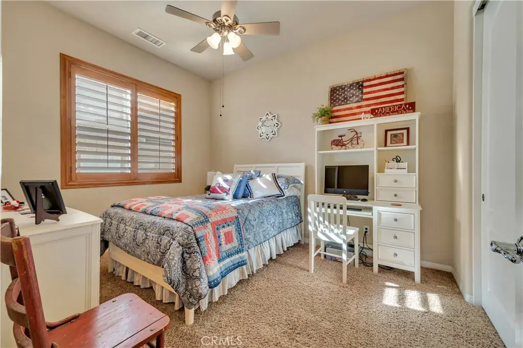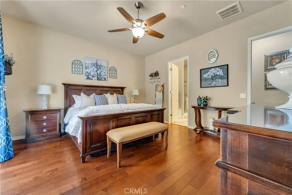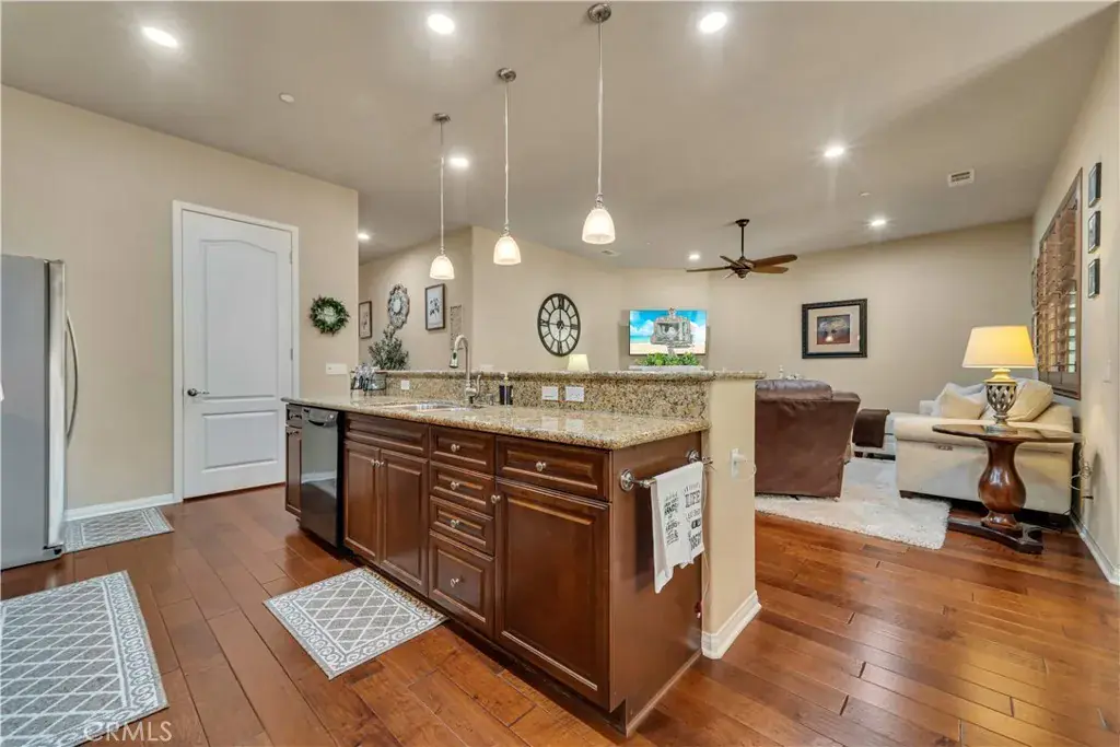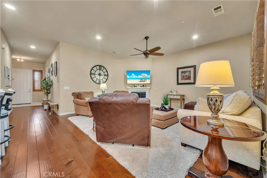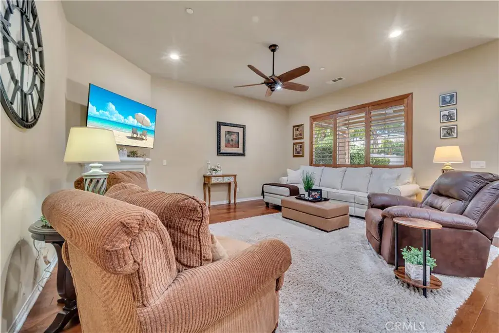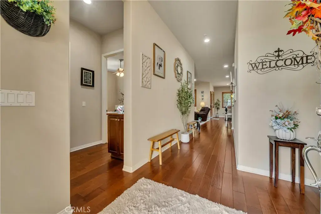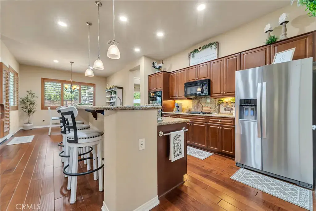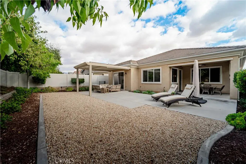Located in the highly sought-after gated 55+ community of Solera at Rio Bravo, this stunning home features 3 spacious bedrooms, 2 full bathrooms, and a rare 3 car tandem garage. Enjoy an open concept layout with beautiful wood flooring, plantation shutters, and a gourmet kitchen with granite countertops, a breakfast bar, and a huge walk-in pantry with custom shelving. The primary suite offers private patio access, a large walk-in closet, and a large bathroom with dual vanities and a walk-in shower. Energy efficient upgrades include solar and a tankless water heater. The backyard is beautifully landscaped and features two covered patios perfect for relaxing or entertaining. Community amenities include a clubhouse, pool, spa, gym, and HOA covered trash service. This home is move in ready. Call for your appointment today!