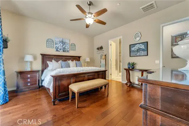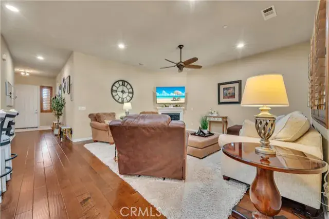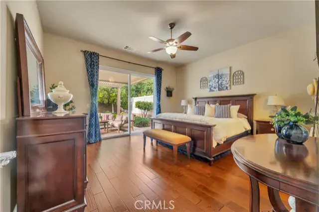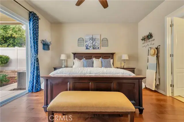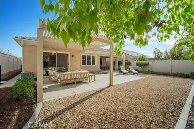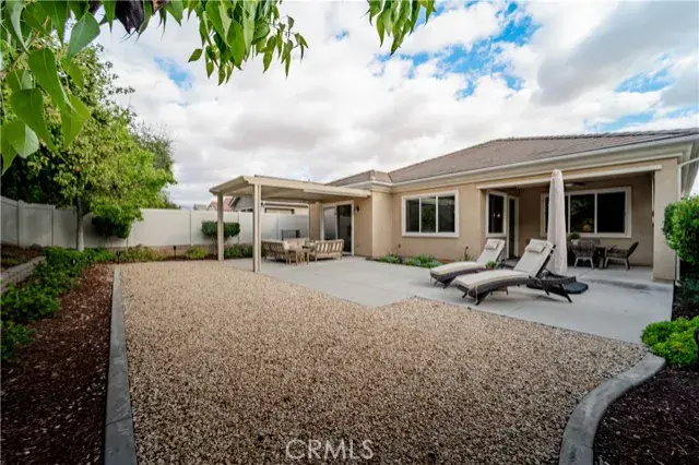 Located in the highly sought-after gated 55+ community of Solera at Rio Bravo, this stunning home features 3 spacious bedrooms, 2 full bathrooms, and a rare 3 car tandem garage. Enjoy an open concept layout with beautiful wood flooring, plantation shutters, and a gourmet kitchen with granite countertops, a breakfast bar, and a huge walk-in pantry with custom shelving. The primary suite offers private patio access, a large walk-in closet, and a large bathroom with dual vanities and a walk-in shower. Energy efficient upgrades include solar and a tankless water heater. The backyard is beautifully landscaped and features two covered patios perfect for relaxing or entertaining. Community amenities include a clubhouse, pool, spa, gym, and HOA covered trash service. This home is move in ready. Call for your appointment today!