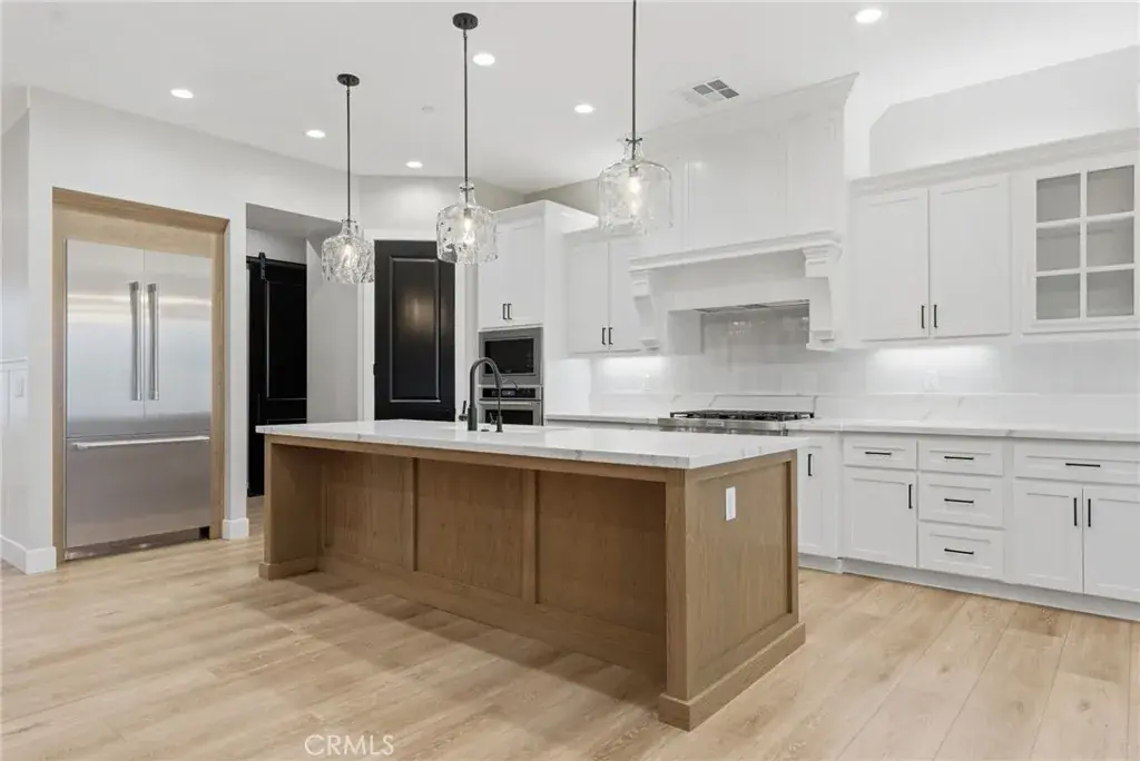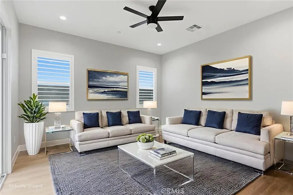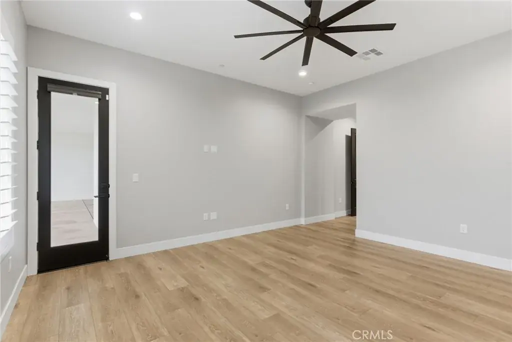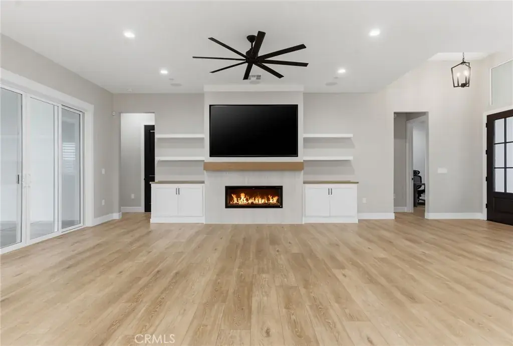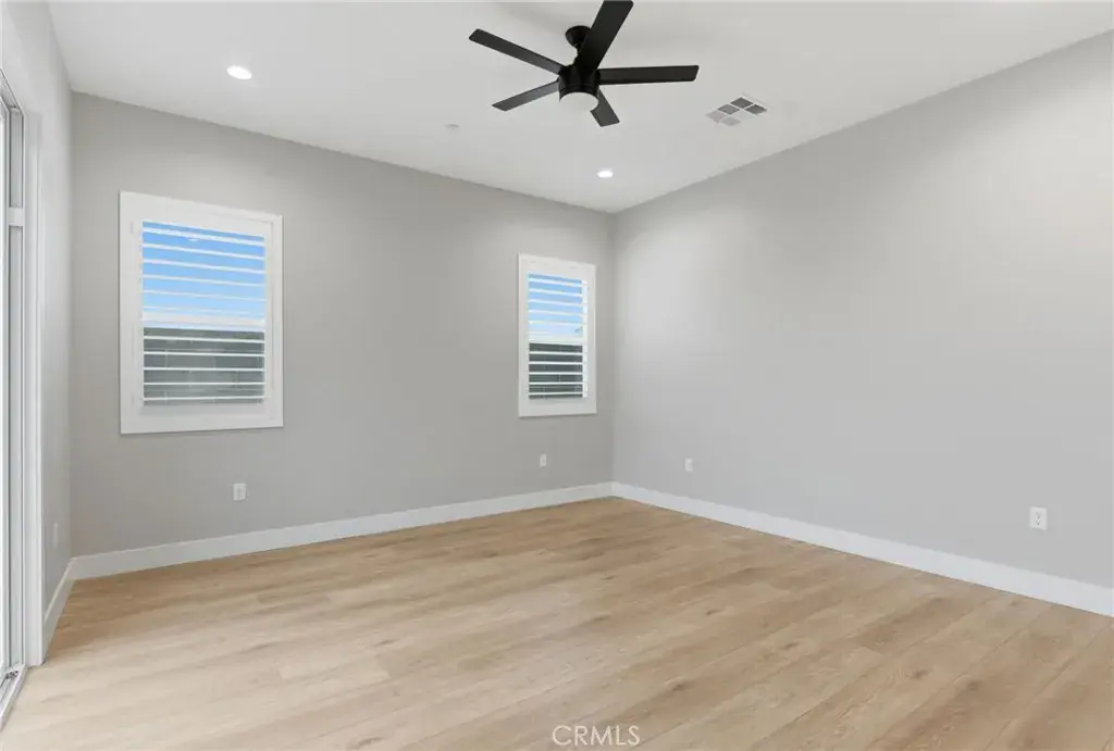 Step into classic modern luxury in the Manorwood Square community by Brian Rice Construction. This former model home offers 4 bedrooms, 2.5 baths, and a spacious game room with an open-concept layout ideal for living and entertaining. The home features a gourmet kitchen with KitchenAid appliances, a custom 36-inch Thermador built-in refrigerator, quartz countertops, and soft-close custom cabinetry. Luxury plank flooring, wood shutters throughout, and a spa-style walk-in shower elevate the design. The great room includes a sleek, flush-mounted 85-inch TV. Situated on a 13,068 sq ft lot, the property offers over 40 feet of concrete pad behind the RV gate, perfect for RV or trailer parking. Owned solar panels add efficiency and long-term value.