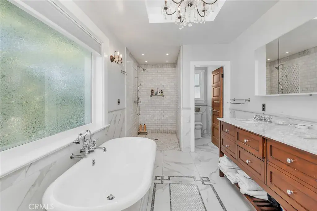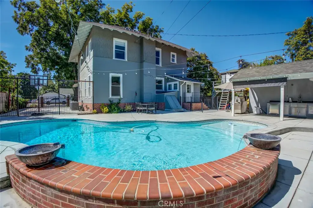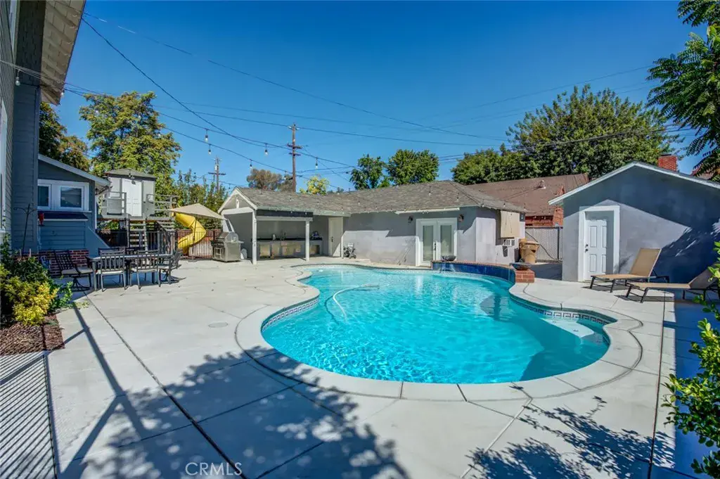 Westchester Classic Beauty! This 4-bedroom, pool house, 3.5-bath home seamlessly blends timeless charm with modern luxury. With RV parking and a 2-car garage, it offers both convenience and style. Inside, the spacious living area is accented by wainscoting, gleaming hardwood floors, and an elegant fireplace. The chef’s kitchen is a true showpiece, featuring quartz countertops, a built-in refrigerator, AGA double oven range, and a butler’s pantry with an 8-foot butcher block top. A formal dining room adds character with its hidden Murphy door, opening to a full basement with a private exterior entrance. Upstairs, the expansive primary suite includes a custom-organized walk-in closet and a spa-inspired en suite complete with pedestal tub and oversized walk-in shower. An indoor utility room provides everyday convenience. Step outside to an entertainer’s dream backyard with an outdoor kitchen, sparkling pool, pool house with bathroom, workshop, and full RV hookups. A rare opportunity to ow