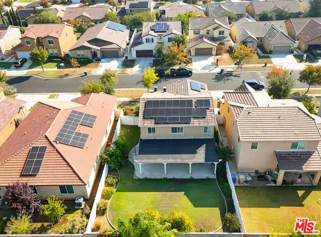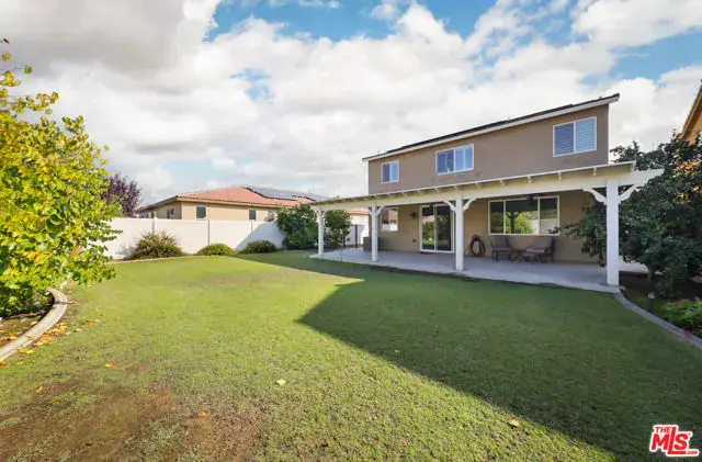 This immaculate two-story home is truly move-in ready, featuring fresh new paint throughout. The first floor offers a spacious open layout with a large kitchen boasting granite countertops, stainless steel appliances, and a generous island with breakfast seating that flows seamlessly into the expansive great room. A convenient powder bath completes the main level.Upstairs, you’ll find four bedrooms and two full bathrooms, including a large master suite with a luxurious en-suite bath featuring dual vanities with quartz counters, a walk-in shower, and a walk-in closet. Three additional well-sized bedrooms, a full guest bath, and an indoor laundry room provide functionality and comfort for the whole family.Outside, enjoy a beautifully landscaped backyard with vinyl fencing and a covered patio perfect for relaxing or entertaining. This home also includes a fully owned solar system to offset rising utility costs and a 50 AMP outlet for RV hook-up.Just a short walk away, you’ll find the community pool, park, BBQ area, and playground.