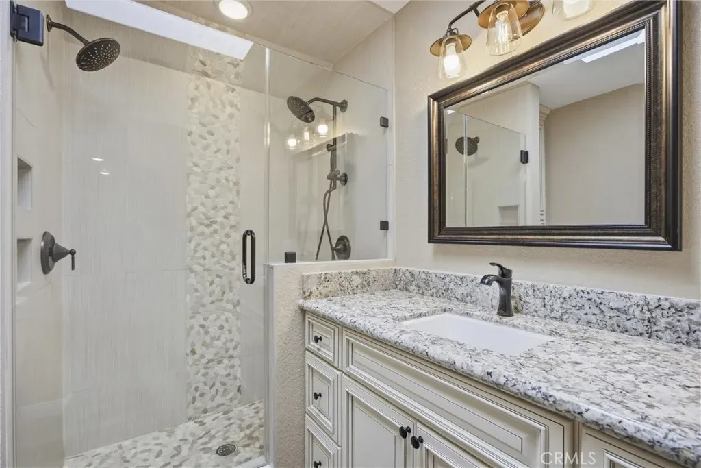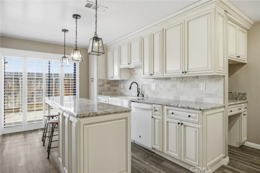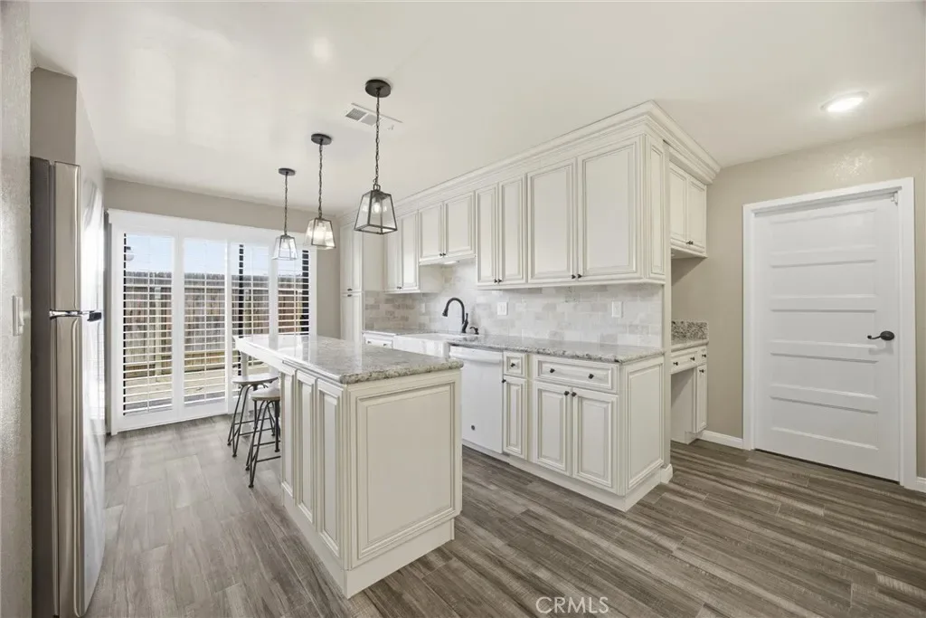 Tastefully updated 2-bedroom, 1-bath condo located in the desirable Tillerman Hills community of Northeast Bakersfield. This beautifully maintained home showcases timeless finishes throughout, including granite countertops, a stylish tile backsplash, white cabinetry, and durable tile flooring. The thoughtfully designed kitchen features a farmhouse sink and a large center island with seating, perfect for both everyday living and entertaining. Enjoy added touches like shutters throughout and a custom-tiled shower that brings a spa-like feel to the bathroom. Step outside and take advantage of the community’s amenities, including a sparkling pool, sport courts, and BBQ area; ideal for relaxing or hosting gatherings. Conveniently located near Bakersfield College, the scenic Panorama Bluffs, and the Kern River, this home offers a perfect blend of comfort, style, and accessibility.