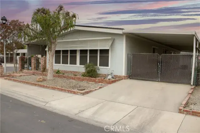 This charming mobile home with new roof! features 2 bedrooms and 2 bathrooms, along with a detached 2-car garage. Inside, you’ll find a spacious living room, formal dining area, indoor laundry, and a generous kitchen with plenty of cabinet space. Outside, enjoy a large carport, easy access to the detached garage, and an expansive patio perfect for entertaining and gatherings.
