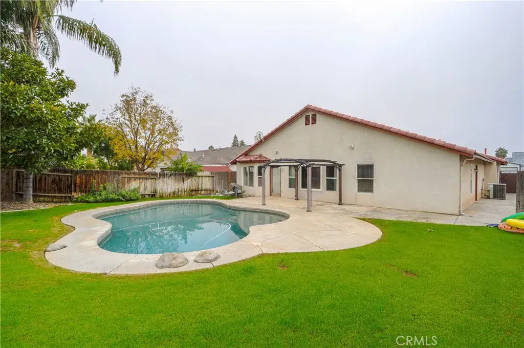 Fantastic property to own, walk in through front door with stunning cut glass adding a touch of elegance and sophistication to the entrance, step into the spacious living room with custom tile floors throughout, vaulted ceilings and elegant hanging light fixture / ceiling fan, step into the well-designed kitchen with convenient cupboard space, range cooktop, built in oven, microwave and dishwasher, step over to the family room and visualize those rest filled evenings in this cozy yet spacious rest motivating space, make your way down the hall and appreciate the four spacious bedrooms which include a presidential style master with its private 3/4 bathroom, duo sinks and huge walk in closet, don’t miss the laundry room with full connections and the direct access to the two car attached garage, now the grand finale,.. step out to the gorgeous entertainer’s yard with covered patio, custom cement decking and in ground sparkling swimming pool, plus a beautifully green landscaped yard for extra fun around the pool, this fine home has it all including central HVAC – seeking a new home owner to call it home sweet home! Call today to schedule a private showing!!