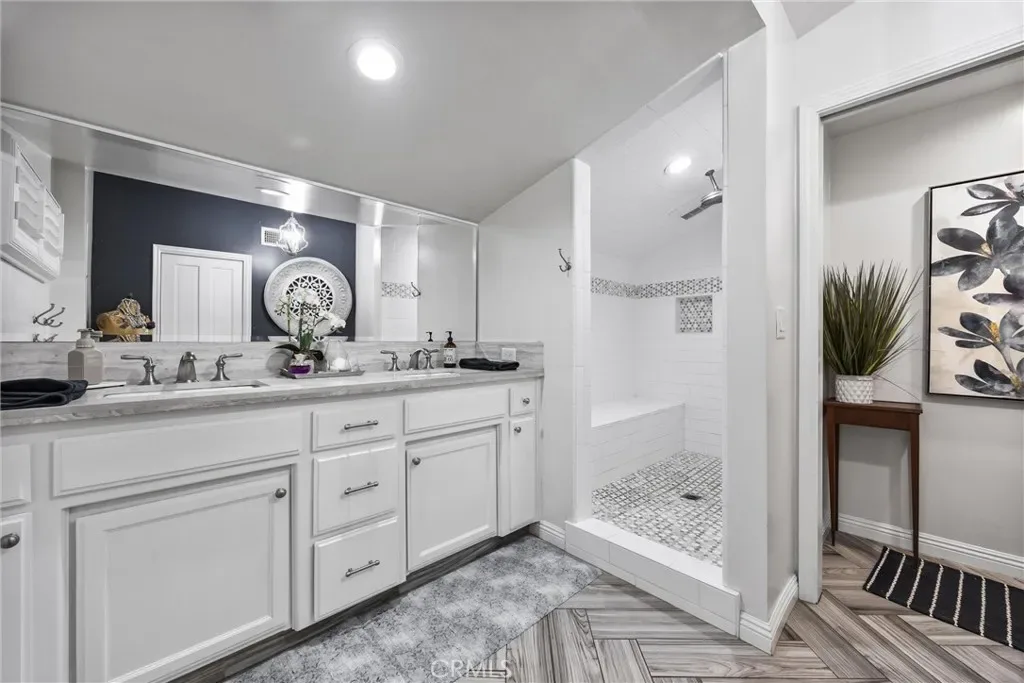 Rare opportunity to own a one-family-owned 3-bedroom, 2-bathroom home in the iconic Olde Stockdale neighborhood, offering thoughtful updates, abundant storage and exceptional functionality. Energy efficiency is already in place with fully owned solar, a roof replaced just nine years ago, newer water heater, and updated windows with plantation shutters throughout. The flexible floor plan includes two primary bedrooms, ideal for multigenerational living or guest accommodations. The remodeled primary suite features a spacious walk-in closet, impressive oversized walk-in shower, mini split, fireplace, and private doors leading to the backyard. A remodeled kitchen with granite counters and updated appliances flows easily into multiple living & dining areas with rich hardwood flooring, adding warmth and timeless character. Step outside to enjoy a backyard retreat featuring a sparkling pool separated by a lawn space for additional outdoor enjoyment with a spa that stays with property.