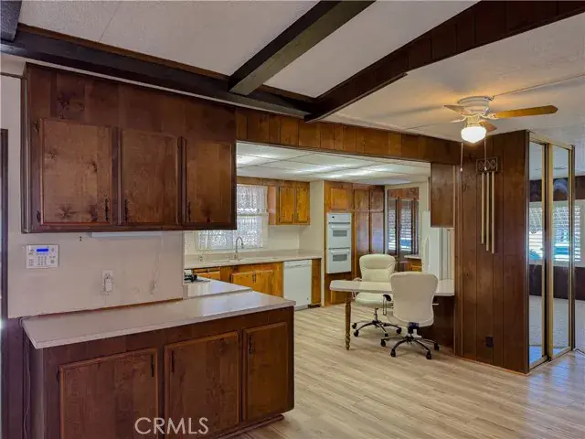 Welcome to this lovely 2-bedroom, 2-bath home with a spacious carport. Inside, you’ll find a formal living room, a formal dining area with built-in cabinet, and a great room featuring wood beams and a wood-burning stove fireplace. The kitchen offers ample cabinet space, and there’s an indoor laundry room for added convenience. Enjoy relaxing or entertaining under the covered patio in the backyard, with easy access to a storage shed for all your personal items. Located in Kern Canyon Estates, this community also offers RV parking, a sparkling pool, and more amenities for your comfort and lifestyle.