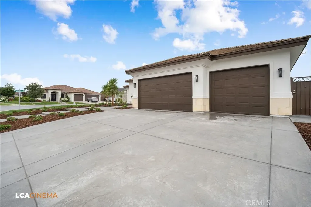 Smooth acrylic stucco, extensive custom finished flatwork, oversized 3-car garage, 8’ garage doors, metal gate, block wall, masonry accents, two tankless WH, alarm system, eave lighting, patio ceiling fans and can lighting.