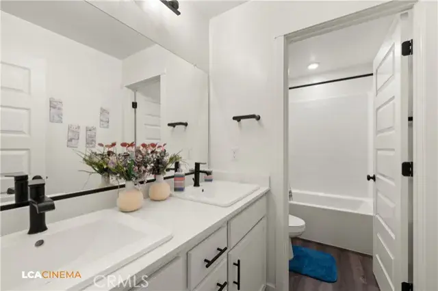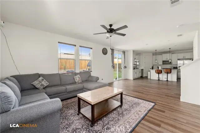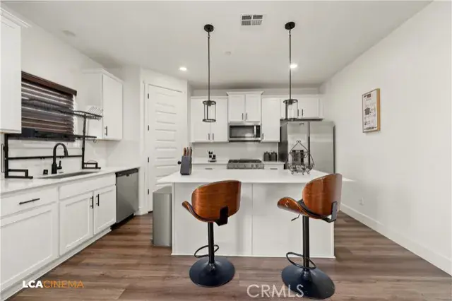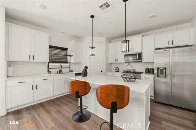 Step into this stunning two-story residence, a spacious haven boasting five bedrooms and three and a half baths within approximately 2,554 square feet of elegant living space and soaring 9-foot ceilings. Upon entry, discover a welcoming guest suite with a full bathroom, providing comfort and privacy for visitors. The heart of the home is an expansive, open-concept living area that seamlessly connects to a chef’s dream kitchen, where shaker-style cabinetry beautifully complements sleek quartz countertops and stylish backsplash. Enjoy the convenience of a walk-in pantry, a centerpiece island adorned with pendant lighting and snack bar, and state-of-the-art stainless-steel appliances—range, microwave, and dishwasher—perfect for culinary adventures. The formal dining space sits gracefully beside the kitchen, ideal for hosting memorable gatherings. Upstairs, retreat to the luxurious main suite with a spa-inspired bathroom featuring dual vanity sinks and a generous walk-in closet, accompanied by three additional bedrooms and a spacious indoor laundry room for ultimate ease. This home masterfully blends comfort, sophistication, and functionality for modern living at its finest.