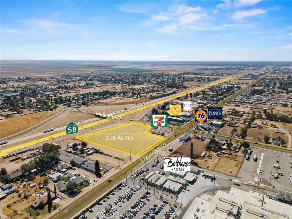 Prime 2.76-acre commercial vacant land comprised of 3 contiguous parcels, offering excellent visibility from Highway 58 and Brundage Lane. Conveniently located just off the Fairfax Rd freeway exit next to 7-Eleven. Zoned M-1 Industrial Acreage, allowing a wide range of light industrial and commercial uses such as warehousing, distribution, light manufacturing, contractor yards, and service-related businesses