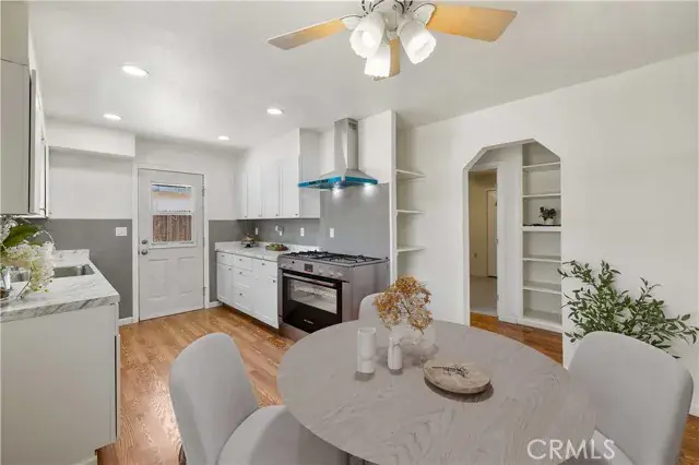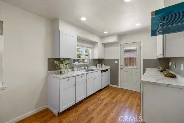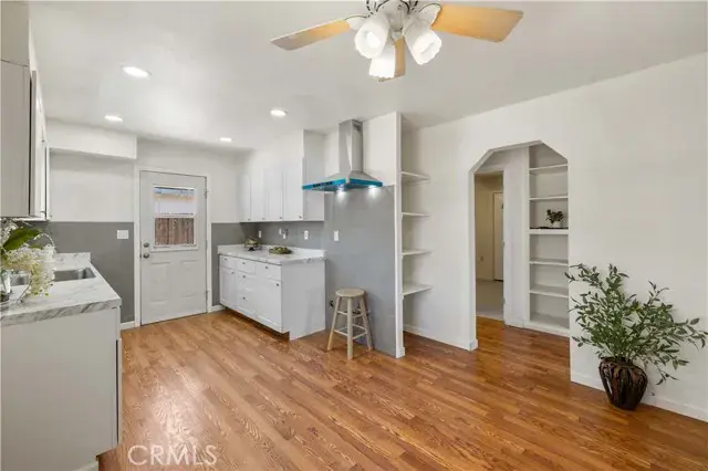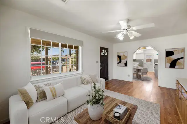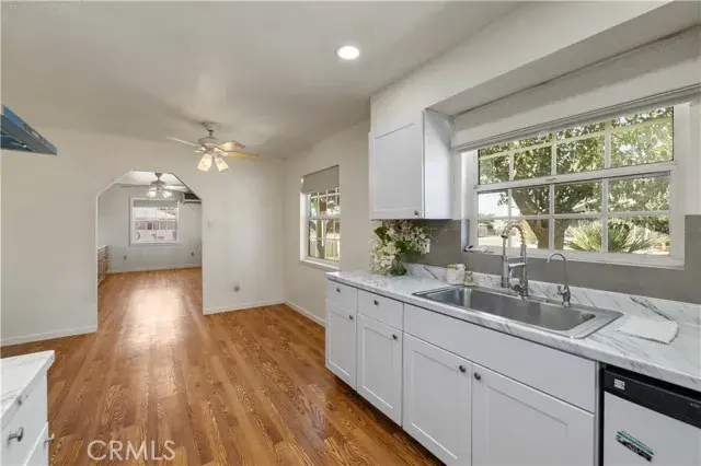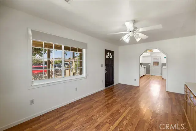 Move-in ready single story on a HUGE lot! ? This beautifully updated 3-bedroom home sits on a massive 10,000+ sq ft lot and is loaded with upgrades. Step inside to brand new flooring, fresh interior paint, and a stylish kitchen featuring a porcelain backsplash, stainless steel hood, new cabinetry, sink, and faucet. The living room pops with custom built-ins and a bold wood front door that makes a statement. Bedrooms come equipped with ceiling fans and upgraded closet doors, while the remodeled bathroom offers sleek, modern finishes with ceramic tile in shower. The enclosed patio with ceiling fan is perfect for relaxing or entertaining, and the oversized backyard includes double gate access and tons of space—ideal for a workshop, storage, or animal quarters. The fully fenced front yard features custom wrought iron gates for added privacy and curb appeal. Other upgrades include a new dishwasher, new electric garage door opener, and a tankless water heater. Home also boasts newer windows, security doors, and a 200-amp electrical panel installed 5 years ago. Walls were fully insulated and a new electric heat pump (A/C + heater combo) was added—also just 5 years ago. This one checks all the boxes—space, style, and upgrades throughout! “Some images have been virtually staged to better showcase the true potential of rooms and spaces in the home.”