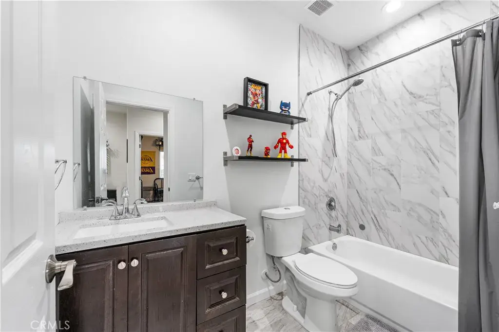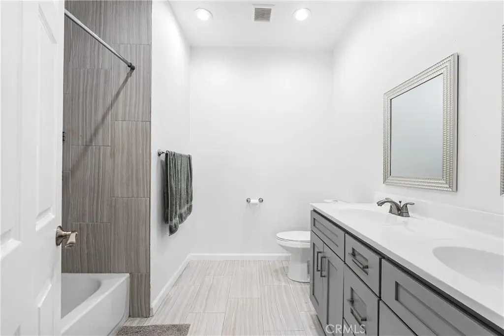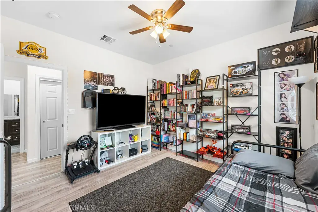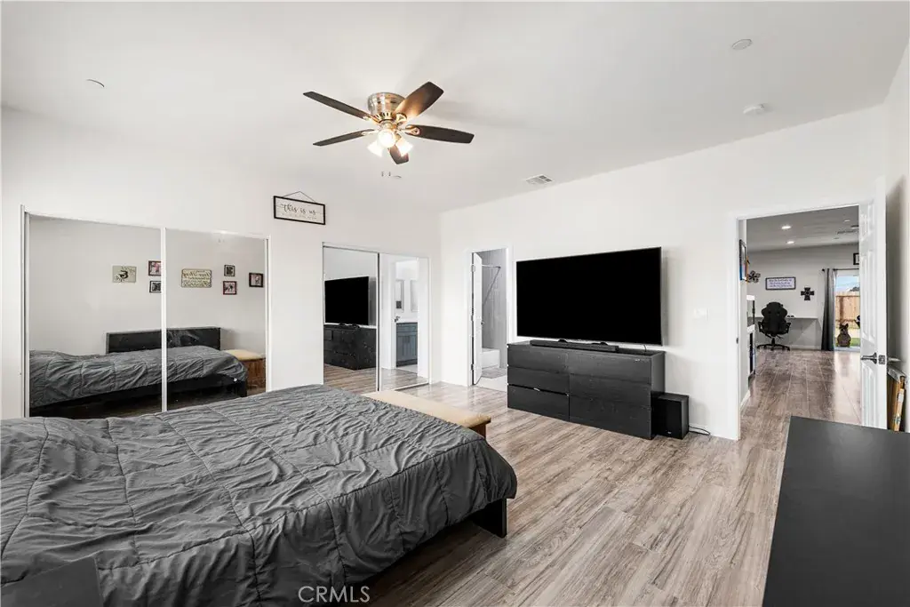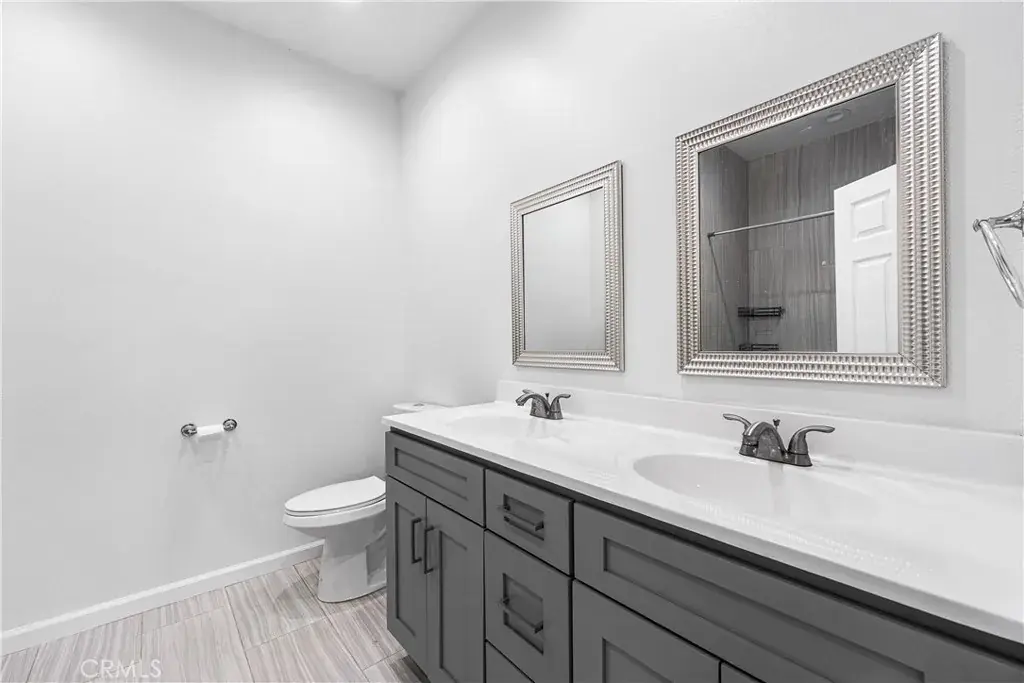 The living room is generously sized and easily accommodates a variety of furniture arrangements, while the split-wing layout provides added privacy. The primary suite is oversized and offers enough room for a king-size bed plus furniture, with a luxurious en-suite bathroom featuring dual vanities and custom tile work in the shower.