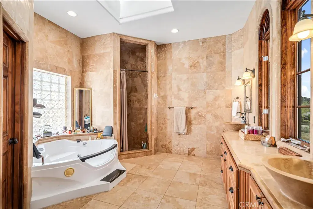 **Welcome to Your Dream Home!** Nestled on a quiet cul-de-sac in North California City, this stunning custom-built Mediterranean-style executive home offers elegance, comfort, and high-end finishes throughout. Step inside to a beautifully designed main floor featuring vaulted beam ceilings, arched windows, and a custom electric fireplace that adds warmth and charm to the spacious living area. Enjoy natural travertine flooring throughout, a gourmet kitchen equipped with granite countertops, Viking stove, built-in oven, microwave, dishwasher, refrigerator, and a walk-in pantry. The kitchen flows seamlessly into the dining area, making it perfect for entertaining. Downstairs also features a guest bedroom and full bath. Upstairs, the luxurious master suite is a true retreat, complete with walk-in closets, French doors leading to the patio, and a spa-inspired bathroom with floor-to-ceiling travertine, a heated jacuzzi tub, and a skylight that fills the space with natural light. Generously sized secondary bedrooms offer large walk-in closets, while additional upgrades throughout the home include fresh interior paint, recessed lighting, tinted windows, ceiling fans, a water filtration system, solar panels, and dual A/C units for year-round comfort. The spacious 3-car garage boasts epoxy flooring, and the entertainer’s backyard is ready for gatherings with a 12-ft tall pergola, above-ground pool, and an in-ground trampoline for endless fun. This home truly has it all—style, function, and luxury. Don’t miss your opportunity to own this incredible property!