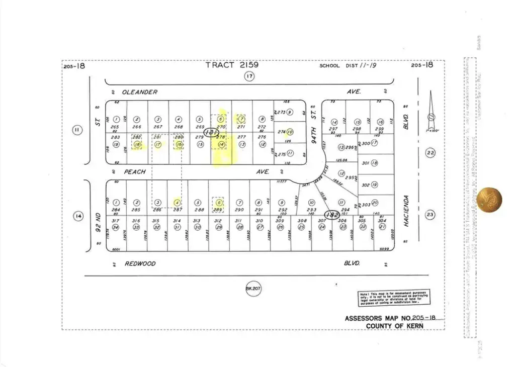 Great California City parcel, ready for your new home plans. Slightly more than 10,000 square feet in the lot which is zoned R1. Notice that homes are present on this paved street. The city indicates utilities are available in or at the street. Buyer to satisfy themselves with such information available from City Building & Planning Departments. There are several completed constructions on Peach Ave. which include two lots over, the house behind the subject but on Oleander, and the house across the street on Peach. Planning indicates no sewer in the street. Plan on septic. City water available. Police & fire are available at this address. Waste Management is a local third party that handles trash needs for the area. The Unified School District Offices are on Redwood a couple of blocks away.
