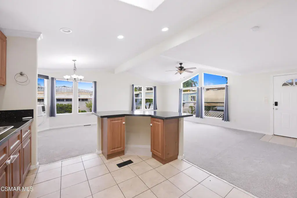 Very Sharp Manufactured Home in the Lamplighter Mobile Home Park in Camarillo. 2 bedrooms, 2 baths with a bonus room which could easily be a 3rd bedroom. Over 1,300 sq ft of living area, fresh interior paint and new carpet. Open floorplan with a large living room, vaulted ceilings, formal dining area, spacious kitchen with granite counter, stainless steel appliances and a breakfast bar. Other features include a large master bedroom and master bath with walk-in-shower. Great location in the park, only a couple of blocks from the community pool and clubhouse. The covered carport/driveway will accomodate 2 cars and there is a large storage shed with electicity and small freezer.