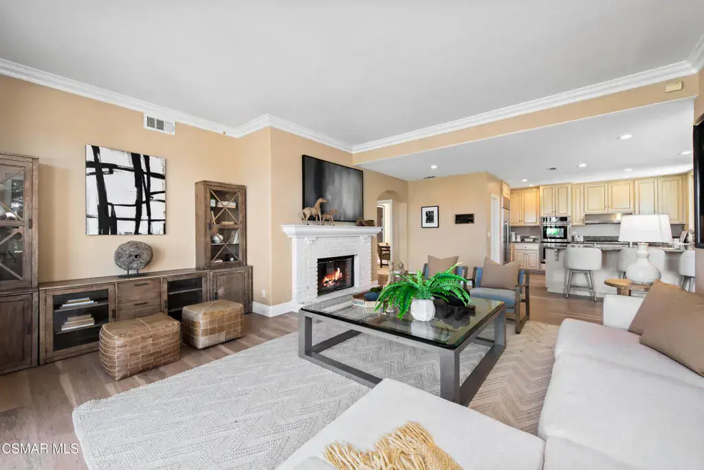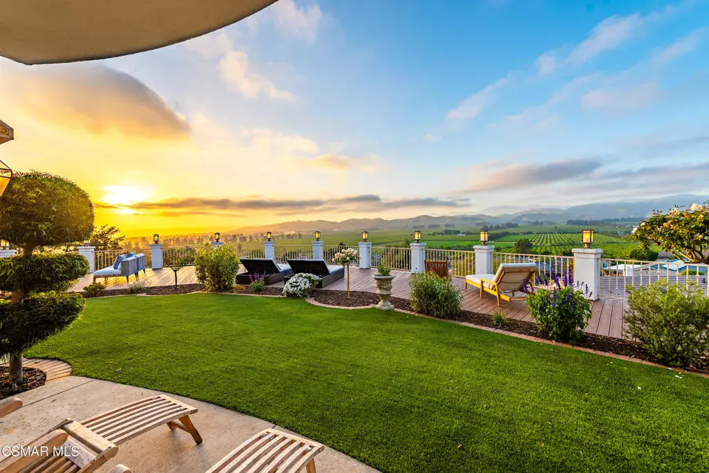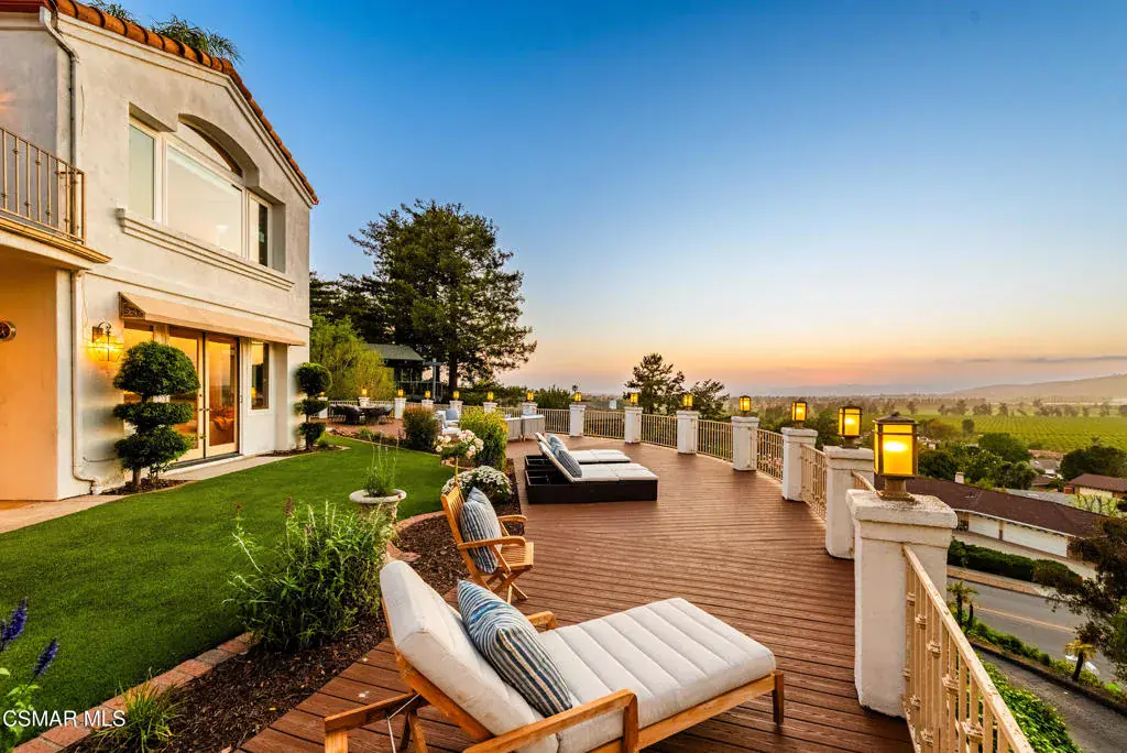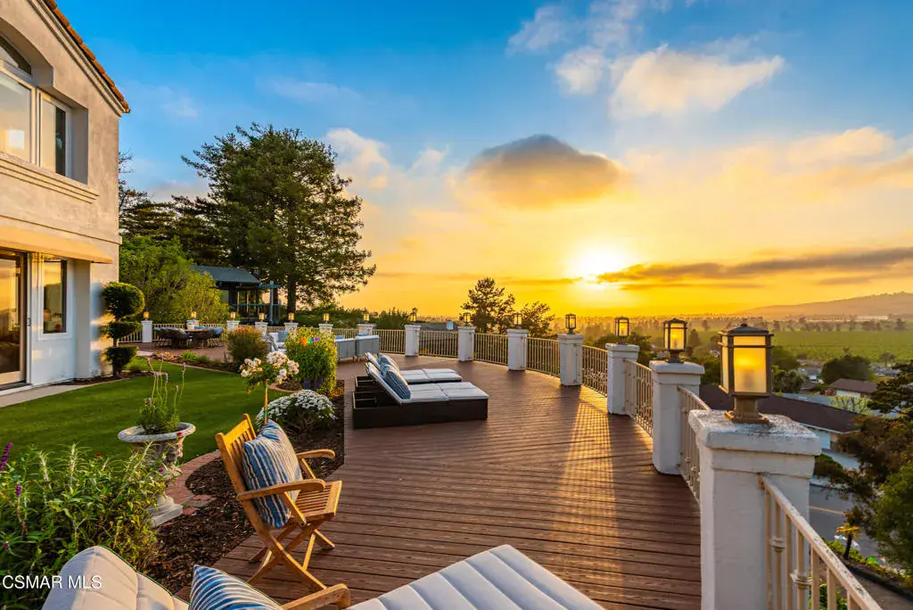 Introducing 1074 Deseo Avenue–an exceptional luxury residence perched on nearly one acre (0.8 acres) in the prestigious Las Posas Estates of Camarillo. Set at one of the community’s highest elevations, this contemporary Mediterranean home commands northwest-facing panoramic views that sweep across the Camarillo plains to the Topatopa Mountains, offering the dramatic sunsets and horizon lines that define Ventura County’s most sought-after view properties. For buyers searching for luxury homes in Ventura County, Las Posas Estates view homes, or Camarillo hilltop estates, this residence is the pinnacle. Perfectly situated between Los Angeles and Santa Barbara, and just 8 minutes to the 101 Freeway, the home benefits from the area’s celebrated microclimate–cool coastal breezes, abundant sunshine, and some of the best weather in the world. The neighborhood offers a rare blend of seclusion and accessibility: private, quiet, low-traffic streets, no HOA, direct access to community equestrian trails, and close proximity to the exclusive Las Posas Country Club, known for its golf course, tennis and pickleball courts, dining, and social lifestyle. Inside, approximately 3,700 square feet of refined living space unfolds with vaulted ceilings, wide-plank oak floors, and expansive windows that frame the views from nearly every room. The chef’s kitchen blends luxury and functionality with a Sub-Zero refrigerator, double ovens, gas cooktop, peninsula island, walk-in pantry, and wet bar–features highly sought by buyers looking for entertainer kitchens and open-concept luxury homes in Camarillo. The floor plan includes four bedrooms, three full bathrooms, and a versatile office/bonus room that can act as a fifth bedroom. A generous downstairs suite provides ideal guest accommodations or multigenerational living. The primary suite is a private sanctuary with a fireplace, spa-inspired bath, and breathtaking views that stretch for miles. In total, the home offers three fireplaces, elevating its ambiance and architectural character. Outdoor living is exceptional. A new 1,600 sq. ft. wraparound Trex deck creates multiple destinations for dining, lounging, and entertaining–perfectly positioned for sunset views and evening gatherings. The in-ground heated spa, fire pit, and expansive seating areas offer a luxurious resort-like atmosphere. The gently terraced grounds feature lush new landscaping and a gated side yard with RV parking, an increasingly rare and in-demand amenity in Ventura County. Additional upgrades include newer A/C, water heater, updated spa equipment, designer carpeting, modern recessed lighting, and public sewer service (not septic). The property also offers extensive driveway parking in addition to its two-car garage. Located within the Pleasant Valley Unified School District and surrounded by the natural beauty, privacy, and lifestyle offerings that define Las Posas Estates, 1074 Deseo Avenue stands as a statement property–an elevated blend of luxury, serenity, and premier Ventura County living.
