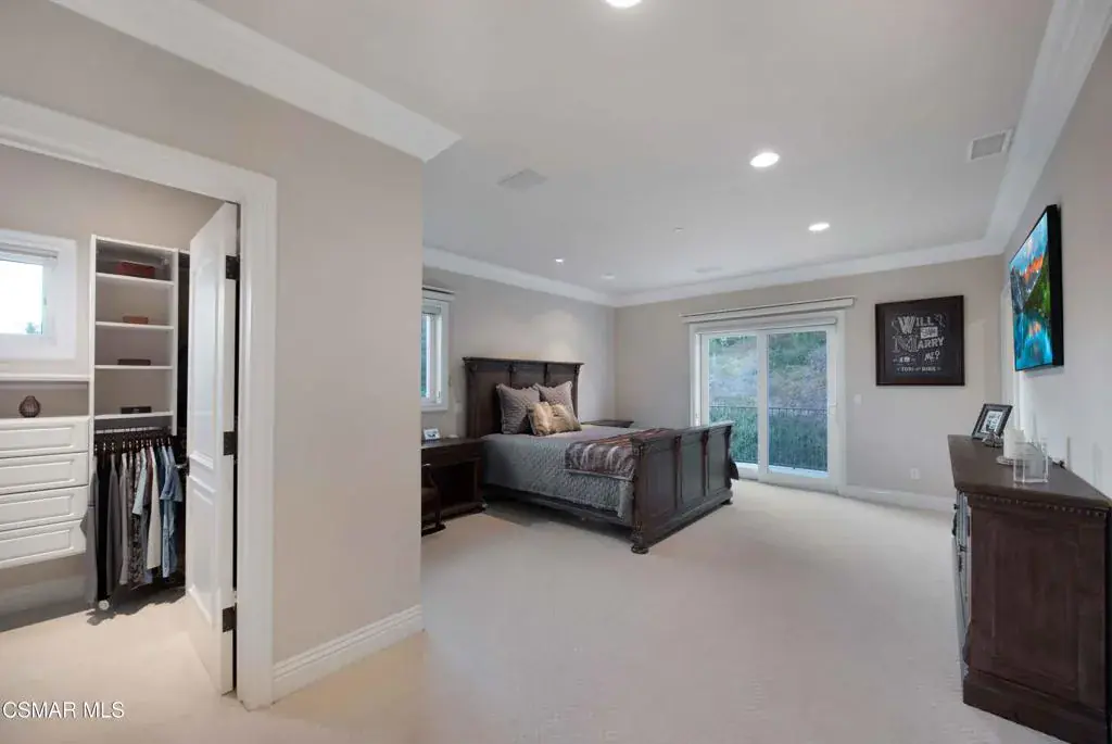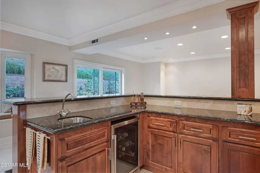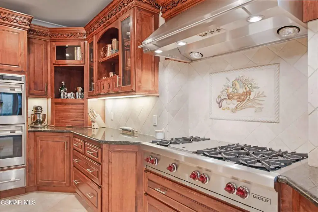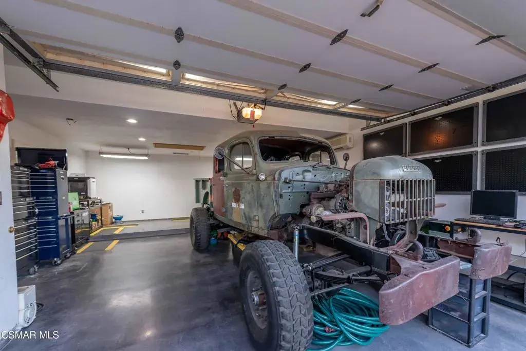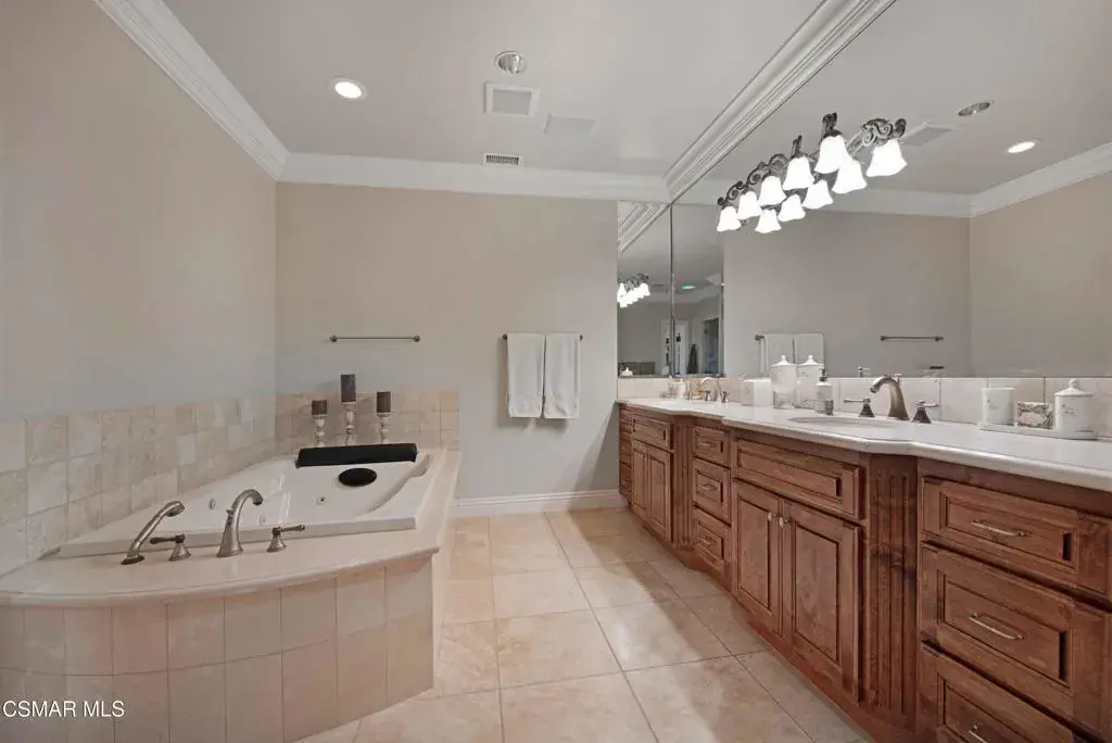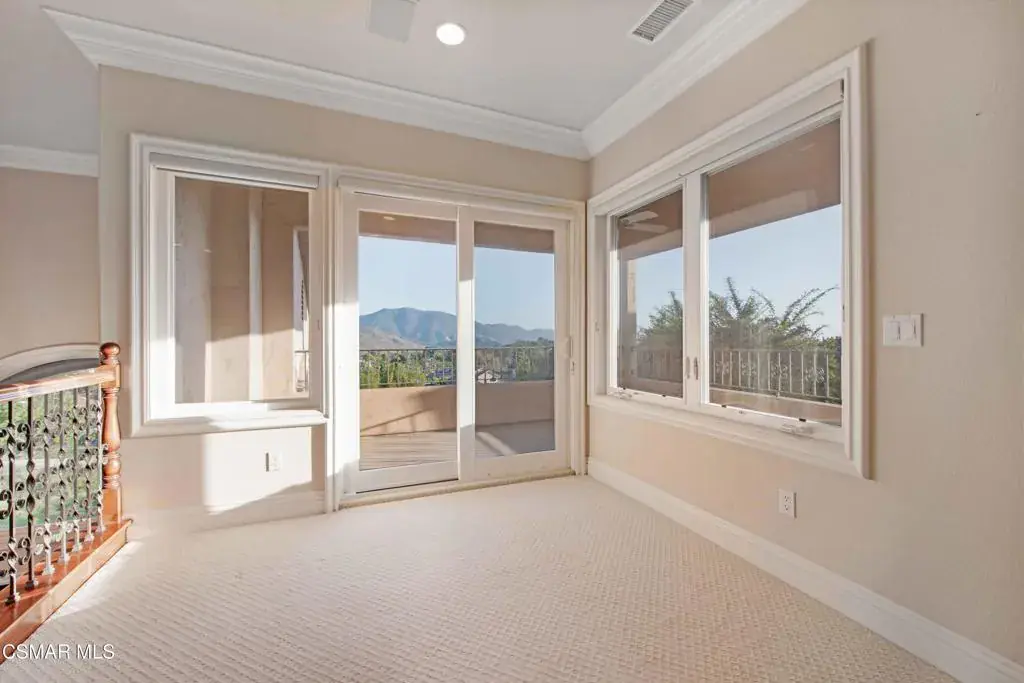 The stage is set for this magnificent custom-built estate in one of the most coveted neighborhoods of Santa Rosa Valley, a truly world-class Camarillo property showcasing breathtaking panoramic views that rank among the finest in all of Ventura County. Spanning approximately 4,600 sq. ft., this rare 6-bedroom, 6-bath luxury residence blends Tuscan warmth with refined elegance and has been meticulously updated with the highest-quality custom finishes throughout. Set on an expansive 1.31-acre lot, the home is a car enthusiast’s dream, featuring a 5-car garage (3-car attached plus an oversized 2-car detached garage/workshop with its own A/C and half bath), extensive RV and boat parking, a 50-amp EV charging port, and ample space for additional vehicles. The downstairs living space offers an open floor plan with soaring ceilings, Italian travertine tile and warm wood flooring, two primary suites with spa-like bathrooms and custom walk-in closets, spacious guest rooms with vaulted ceilings, updated baths, an oversized chef’s kitchen with granite countertops, Wolf range, GE Monogram refrigerator/freezer, beverage fridge, bar seating, a custom oak wine cellar with wrought-iron gates, and a large laundry room. Upstairs, a spacious loft/library with fireplace, a stunning balcony with sweeping views, and a third primary suite with dual walk-in closets and a luxurious bathroom further elevate the home. Modern smart-home features include a SONOS speaker system with individual room controls, Wi-Fi mesh system, whole-home entertainment integration, and a Jandy remote pool system. Outside, the private, multi-tiered grounds are an entertainer’s paradise, offering a long rebar-reinforced private driveway, expansive grassy play area, mature landscaping with fruit trees and herb garden, BBQ area, multiple outdoor lounge spaces, paid-in-full solar with 43 panels, and a show-stopping infinity pool with Idaho stone spillover and spa–an unmistakable toast to luxury living at its finest.
