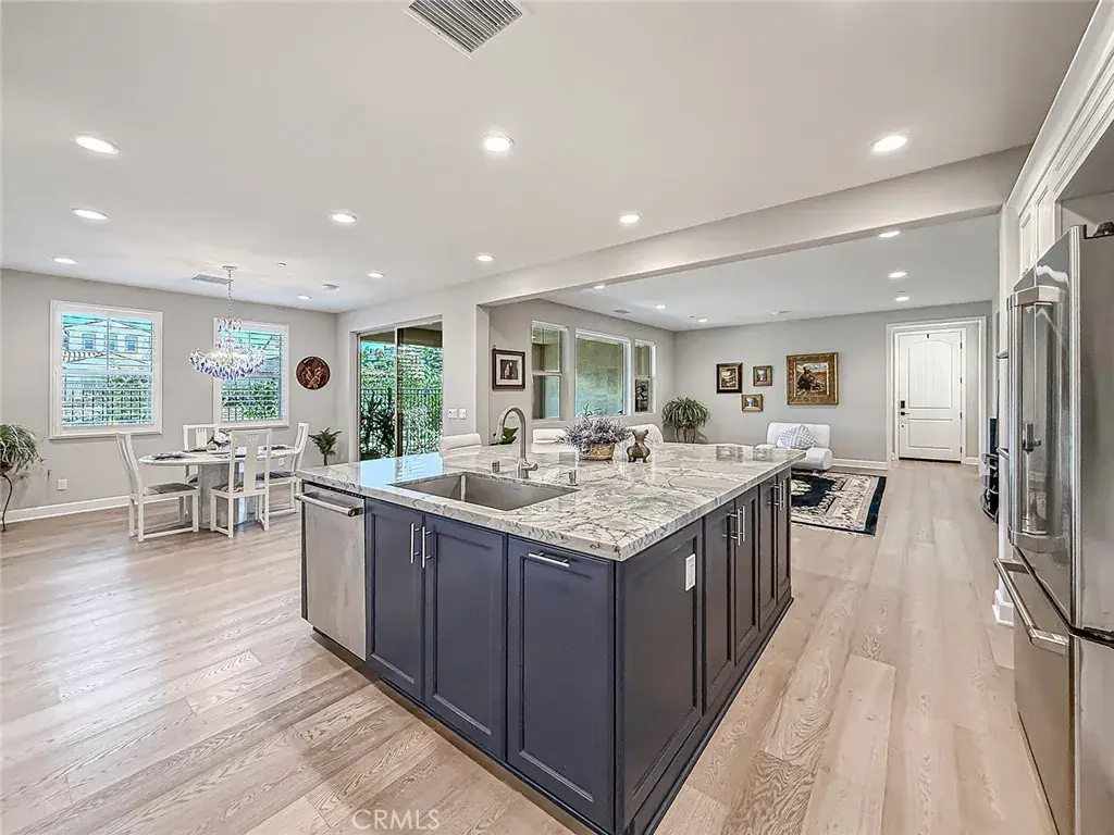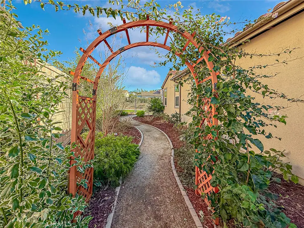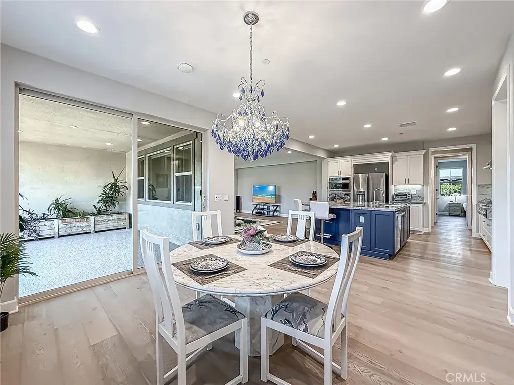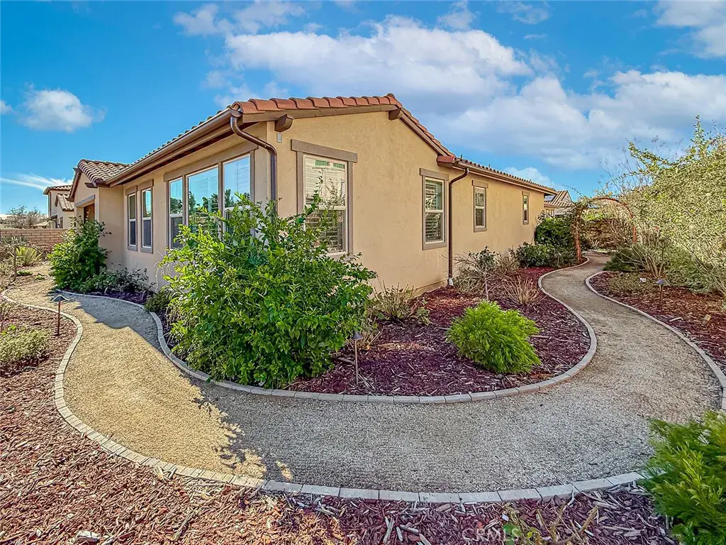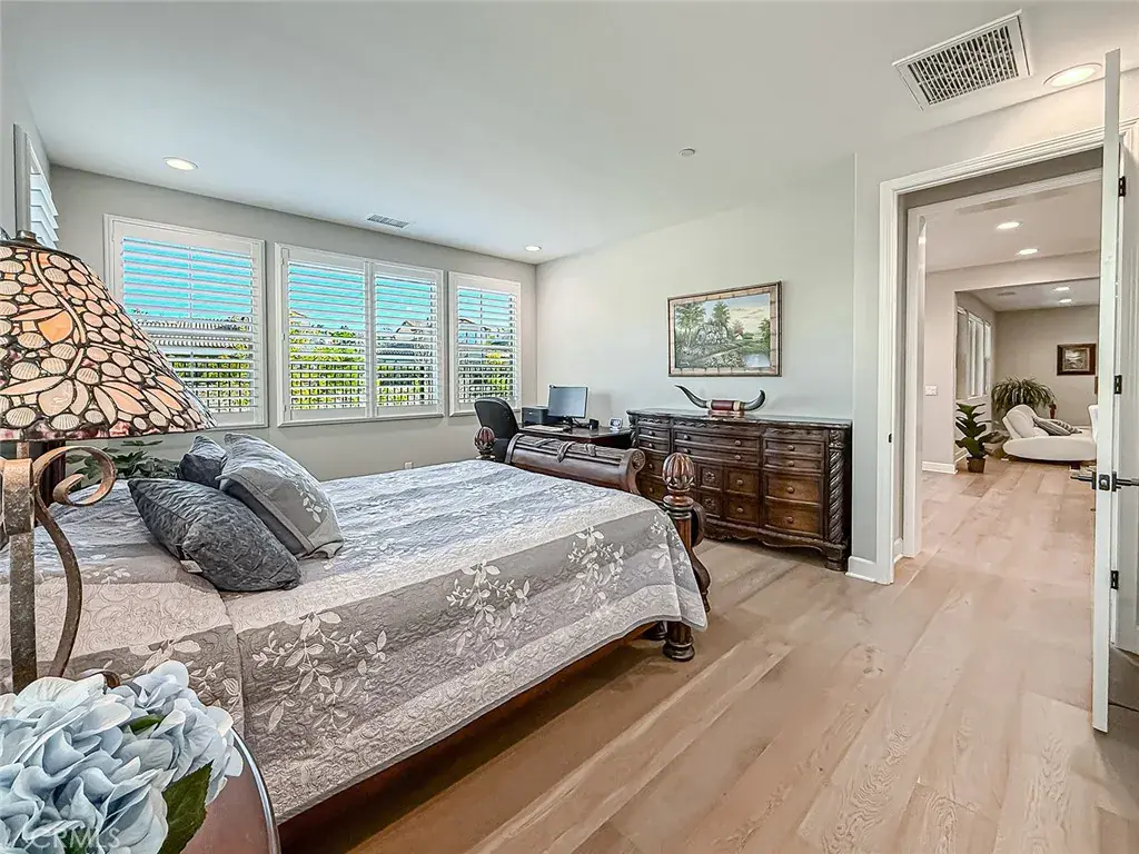This highly coveted Citron Plan 3 home sits on a premium view lot and does not disappoint! Filled with amazing upgrades throughout, it offers luxurious style in the exclusive Grove 55+ gated community. Upon entering you immediately notice the gorgeous neutral color of the real wood flooring and the natural light flooding in from many windows showcasing the views. This property does not back to another home, providing an open, spacious feeling. This layout is highly sought after for the open flow and large kitchen with an island facing the living space, providing a great room ideal for gatherings and connected daily life. The kitchen features stunning marble counters and backsplash, Monogram appliances, custom cabinetry, and a large basin style sink. The dining room, situated within the large living space, features a gorgeous blue accented chandelier to match the kitchen. Having three bedrooms/three full baths allows for flexible living options and a more private guest space. Two of the bedrooms have large ensuite baths, with the third full bath located right next to the third bedroom. All baths have tile floors and matching tiling in the shower and baths. The primary shower has 12×24 tiles running from floor to ceiling which adds an elevated touch. From plantation shutters and custom window coverings, wood casing around each entry way, recessed lighting, a Fall Scan water softener, EV wiring, and epoxy flooring in the garage and the back patio, there is attention to detail everywhere you look. The backyard has been meticulously crafted into a botanical paradise, fully landscaped with a variety of colorful plants, from pink roses and giant hydrangeas to Hawaiian plumeria, bicolor bougainvillea and purple honeydew drops, this yard will not leave you without some beautiful views to enjoy. The Grove is a well-known senior living escape. With the range of activities and amenities welcoming all levels of activity and varying interests alike, homeowners can find countless ways to make new friends or pick up a new hobby. Work out in the state-of-the-art gym, play some pickleball, ping pong or bocce ball. There is also a putting green, large walk-in swimming pool, 24-person jacuzzi, walking trails, and two dog parks! Or relax in a cabana with a book from The Grove library. The BBQ/fireplaces make a great place to host guests or enjoy your friends. There are also dozens of clubs and groups to join. Buying a home in The Grove is buying a lifestyle. Don’t miss out!