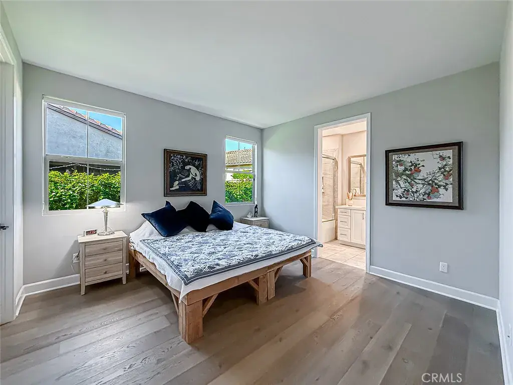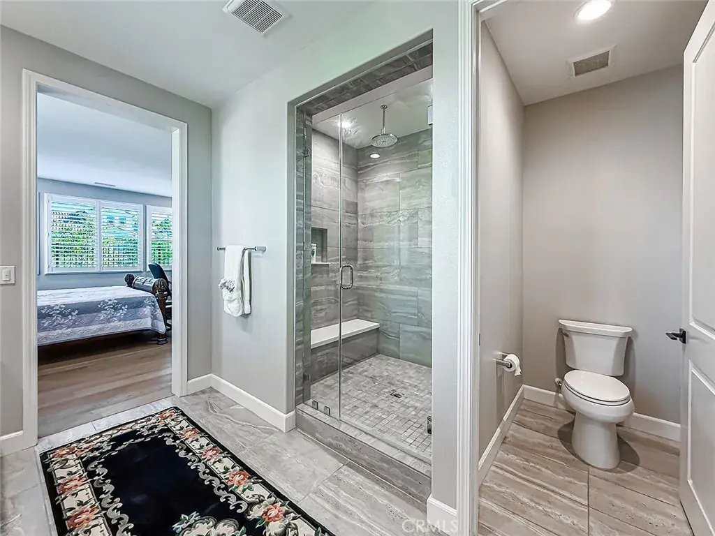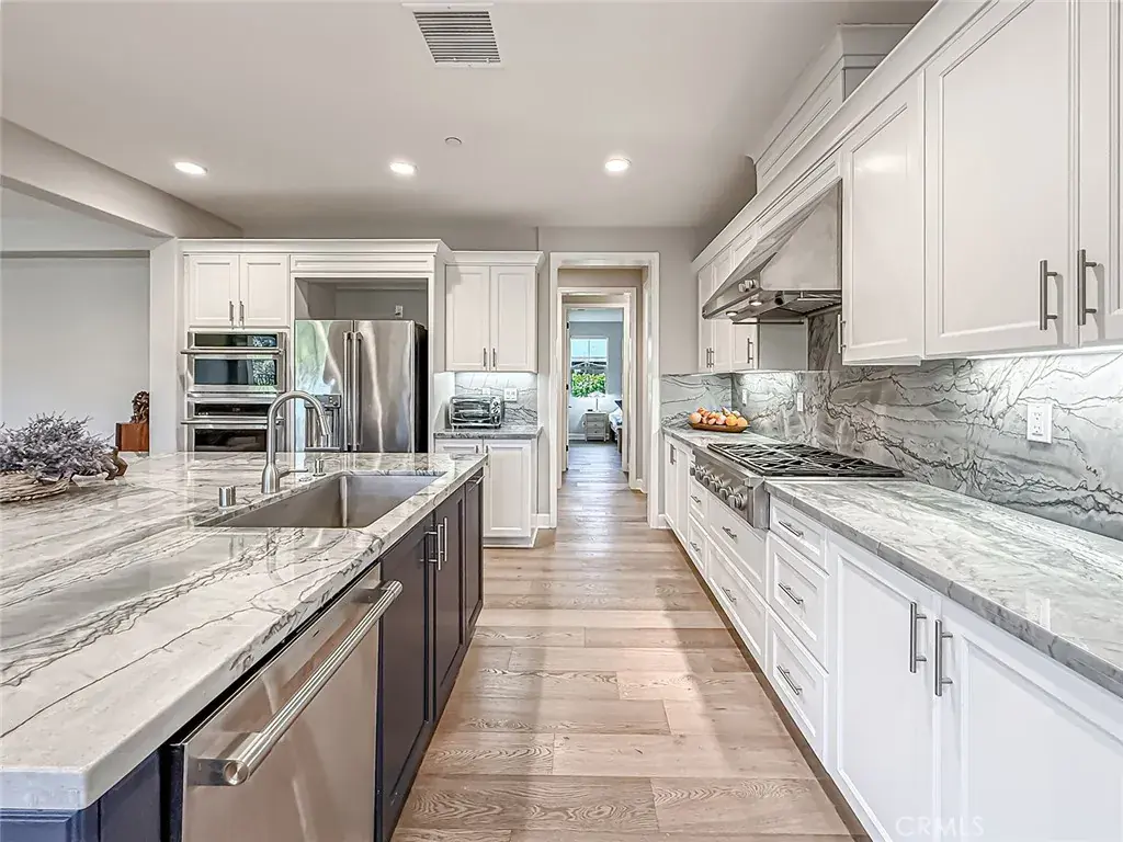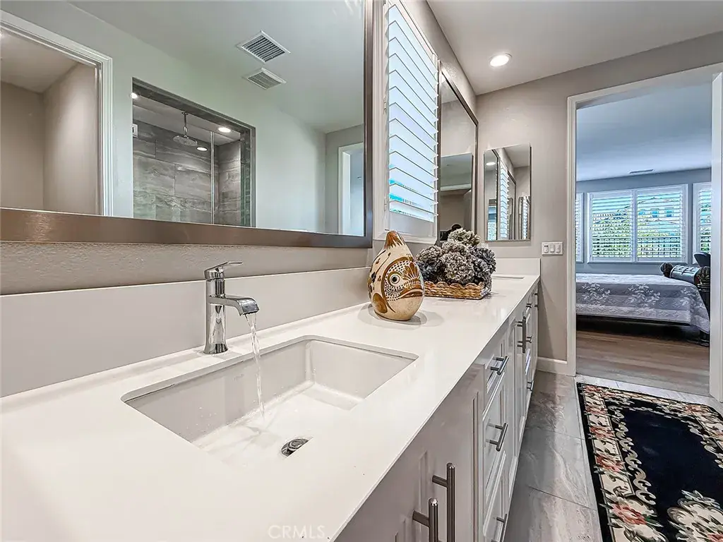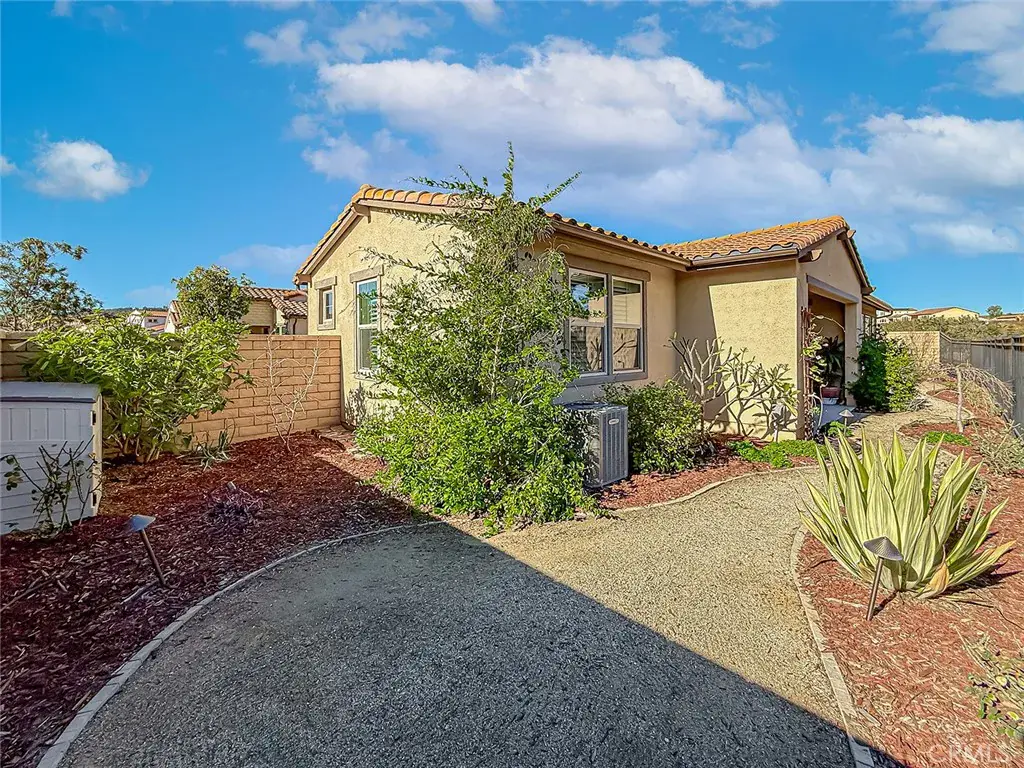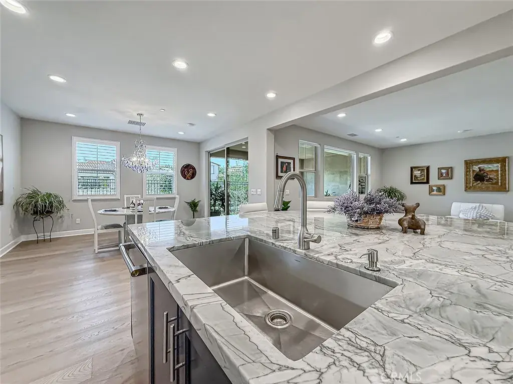 This highly coveted Citron Plan 3 home sits on a premium view lot and does not disappoint! Filled with amazing upgrades throughout, it offers luxurious style in the exclusive Grove 55+ gated community. Upon entering you immediately notice the gorgeous neutral color of the real wood flooring and the natural light flooding in from many windows showcasing the views. This property does not back to another home, providing an open, spacious feeling. This layout is highly sought after for the open flow and large kitchen with an island facing the living space, providing a great room ideal for gatherings and connected daily life. The kitchen features stunning marble counters and backsplash, Monogram appliances, custom cabinetry, and a large basin style sink. The dining room, situated within the large living space, features a gorgeous blue accented chandelier to match the kitchen. Having three bedrooms/three full baths allows for flexible living options and a more private guest space. Two of the bedrooms have large ensuite baths, with the third full bath located right next to the third bedroom. All baths have tile floors and matching tiling in the shower and baths. The primary shower has 12×24 tiles running from floor to ceiling which adds an elevated touch. From plantation shutters and custom window coverings, wood casing around each entry way, recessed lighting, a Fall Scan water softener, EV wiring, and epoxy flooring in the garage and the back patio, there is attention to detail everywhere you look. The backyard has been meticulously crafted into a botanical paradise, fully landscaped with a variety of colorful plants, from pink roses and giant hydrangeas to Hawaiian plumeria, bicolor bougainvillea and purple honeydew drops, this yard will not leave you without some beautiful views to enjoy. The Grove is a well-known senior living escape. With the range of activities and amenities welcoming all levels of activity and varying interests alike, homeowners can find countless ways to make new friends or pick up a new hobby. Work out in the state-of-the-art gym, play some pickleball, ping pong or bocce ball. There is also a putting green, large walk-in swimming pool, 24-person jacuzzi, walking trails, and two dog parks! Or relax in a cabana with a book from The Grove library. The BBQ/fireplaces make a great place to host guests or enjoy your friends. There are also dozens of clubs and groups to join. Buying a home in The Grove is buying a lifestyle. Don’t miss out!