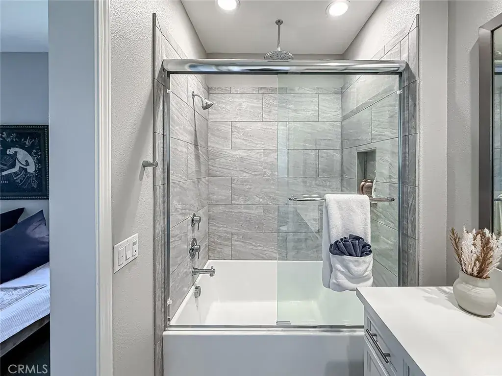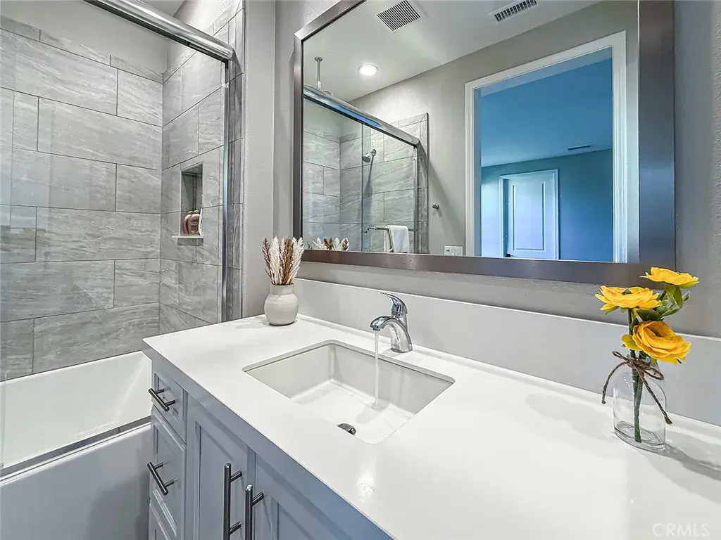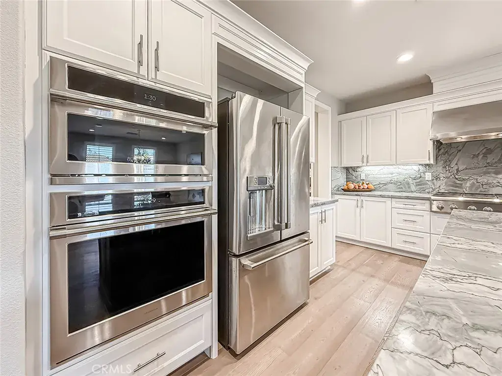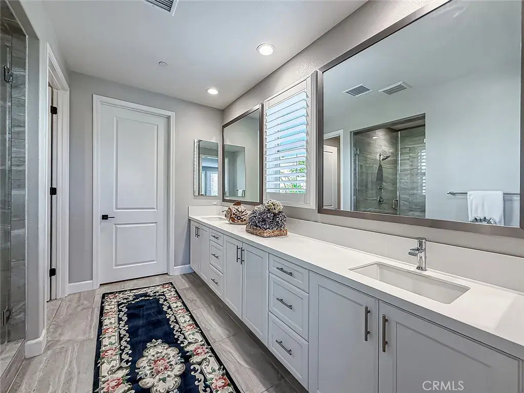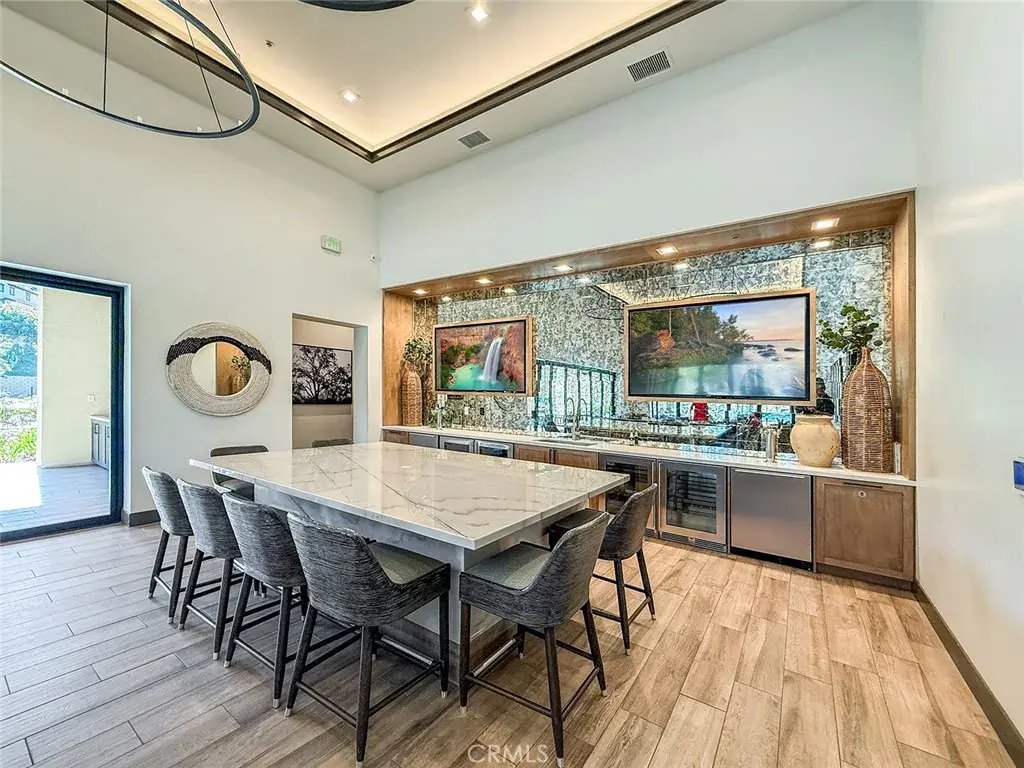 This highly coveted Citron Plan 3 home sits on a premium view lot and does not disappoint! Filled with amazing upgrades throughout, it offers luxurious style in the exclusive Grove 55+ gated community. Upon entering you immediately notice the gorgeous neutral color of the real wood flooring and the natural light flooding in from many windows showcasing the views. This property does not back to another home, providing an open, spacious feeling. This layout is highly sought after for the open flow and large kitchen with an island facing the living space, providing a great room ideal for gatherings and connected daily life. The kitchen features stunning marble counters and backsplash, Monogram appliances, custom cabinetry, and a large basin style sink. The dining room, situated within the large living space, features a gorgeous blue accented chandelier to match the kitchen. Having three bedrooms/three full baths allows for flexible living options and a more private guest space. Two of the bedrooms have large ensuite baths, with the third full bath located right next to the third bedroom. All baths have tile floors and matching tiling in the shower and baths. The primary shower has 12×24 tiles running from floor to ceiling which adds an elevated touch. From plantation shutters and custom window coverings, wood casing around each entry way, recessed lighting, a Fall Scan water softener, EV wiring, and epoxy flooring in the garage and the back patio, there is attention to detail everywhere you look. The backyard has been meticulously crafted into a botanical paradise, fully landscaped with a variety of colorful plants, from pink roses and giant hydrangeas to Hawaiian plumeria, bicolor bougainvillea and purple honeydew drops, this yard will not leave you without some beautiful views to enjoy. The Grove is a well-known senior living escape. With the range of activities and amenities welcoming all levels of activity and varying interests alike, homeowners can find countless ways to make new friends or pick up a new hobby. Work out in the state-of-the-art gym, play some pickleball, ping pong or bocce ball. There is also a putting green, large walk-in swimming pool, 24-person jacuzzi, walking trails, and two dog parks! Or relax in a cabana with a book from The Grove library. The BBQ/fireplaces make a great place to host guests or enjoy your friends. There are also dozens of clubs and groups to join. Buying a home in The Grove is buying a lifestyle. Don’t miss out!