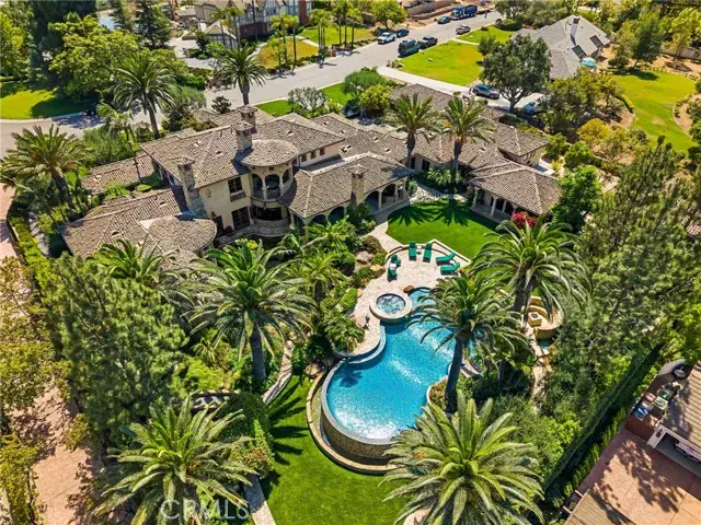 MOTIVATED SELLER OFFERS an EXCEPTIONAL VALUE! $600K price improvement since listed and is NOW OFFERED FULLY FURNISHED ($500K value) if in escrow by 12/31/25 (subject to inventory list). HAVE A HOME TO SELL? SELLER WILL CARRY UP TO 50% until your home sells (subject to qualification). AMAZING ESTATE HOME Set behind private gates and a striking stone façade, this stunning Italian Villa offers resort-style living with unmatched privacy and luxury amenities. Designed with timeless craftsmanship and modern comforts, nearly all bedrooms are located on the main floor, with elevator access throughout the home. A separate guest casita and a fully equipped guest cottage (complete with kitchen, laundry, living room, and bedroom suite) make hosting effortless. Inside, the home features Venetian plaster walls, imported limestone and marble, custom cabinetry, and beautiful Versailles-pattern wood floors. The great room boasts dramatic beamed ceilings and a stone fireplace, while the formal dining room opens to a peaceful courtyard. Five balconies and multiple courtyards create inviting indoor-outdoor living spaces. The gourmet kitchen includes a large island, butler’s pantry, and Wolf/Sub-Zero appliances. Disappearing doors lead to a covered loggia with outdoor fireplace, Viking-equipped kitchen, circular bar, and a unique glass floor with a view into the wine cellar below. The impressive lower level offers a climate-controlled wine room with seating for 20, kitchenette, bath, and an adjacent home theater. A private patio with firepit sits along flowing water features for a serene retreat. The main-floor primary suite includes a covered balcony, dual walk-in closets, fireplace, heated floors, spa-style bath, and a private courtyard. Upstairs, a flexible game room or additional guest suite features an outdoor stone fireplace and balconies overlooking the grounds. Additional perks include Crestron home automation, security system, safe room, and a quiet cul-de-sac location. The exterior lives like a private resort, with an infinity-edge pool and spa spilling into a winding stream with waterfalls, sunken firepit, fruit trees, and vegetable gardens. A gated motor court with stone driveway provides generous parking, plus garage space for 7 cars and an RV. A rare opportunity to own a true legacy estate offering privacy, luxury, and exceptional amenities in every detail. Designed to captivate, inspire, and provide an unparalleled setting for elegant living and entertaining