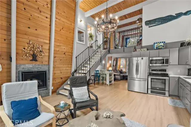 Inside, the home has been thoughtfully updated over recent years with new flooring throughout, fresh interior and exterior paint, and remodeled kitchen and bathroom spaces. The layout features two comfortable living areas, enhanced by a newer electric fireplace—the perfect cozy touch for relaxing evenings. Dramatic floor-to-ceiling windows in the main living room fill the space with natural light and frame the surrounding pine trees, bringing the outdoors in. A dedicated wine room adds a touch of sophistication and is ready for entertaining or personal enjoyment.