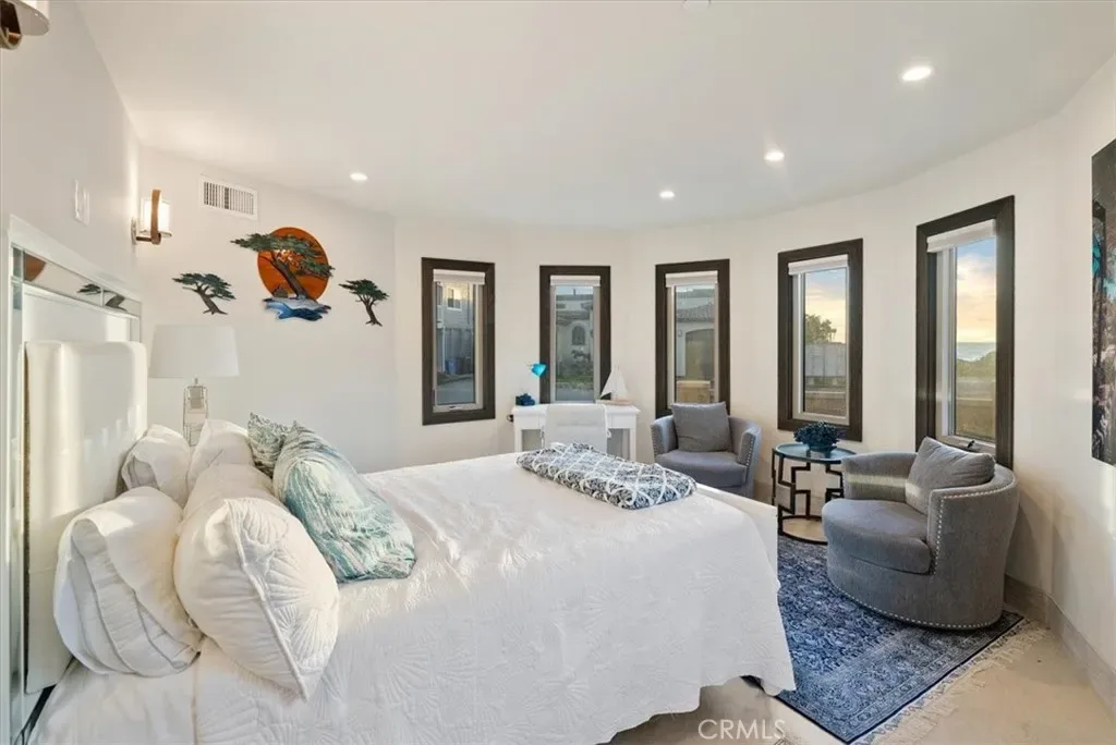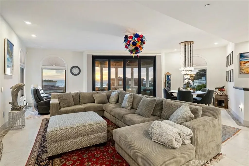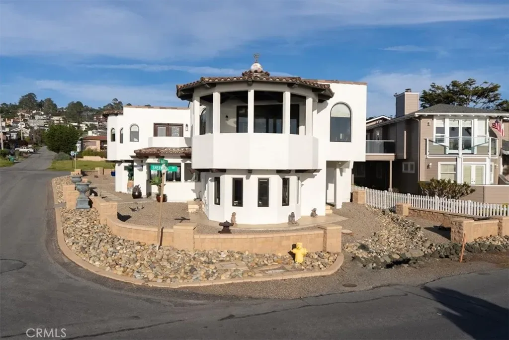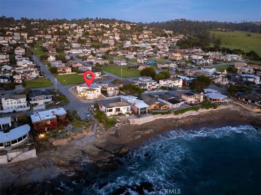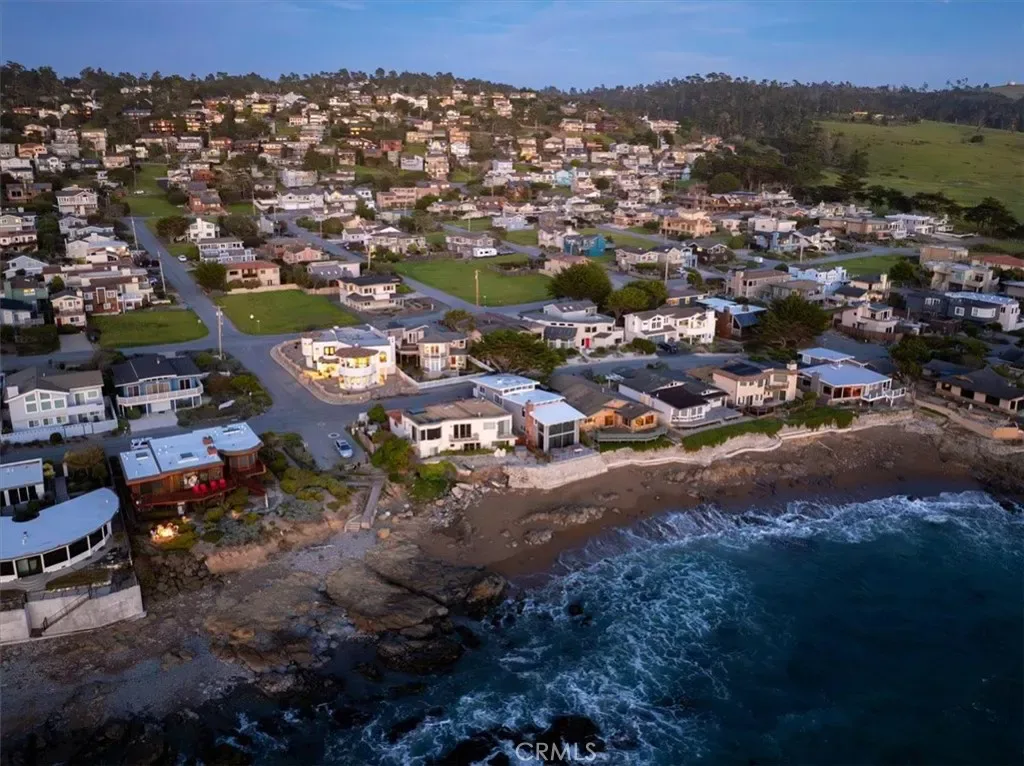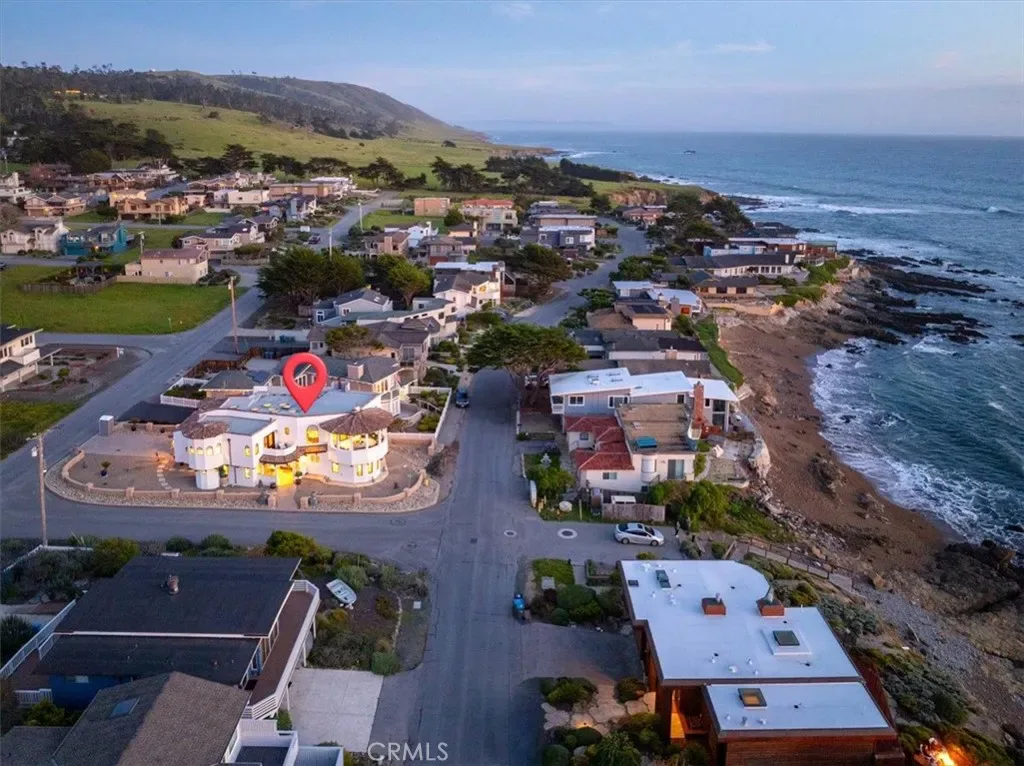 Extraordinary coastal living unfolds along one of Cambria’s most desirable streets, where sweeping white-water views and the rhythm of the Pacific define the experience of this thoughtfully designed residence. Encompassing approximately 2,961± square feet, the home offers 4 bedrooms and 4.5 baths, each space carefully composed to balance comfort, privacy, and refined coastal style. The interiors are anchored by an expansive great room where living, dining, and kitchen areas come together seamlessly, framed by wide windows that draw in natural light and capture the dramatic coastline beyond. At the center of the home, the kitchen is both functional and artful, featuring a striking solid glass island custom-designed and signed by a world-renowned artist, complemented by high-gloss cabinetry and premium appliances, including an Italian gas range and built-in convection oven and microwave. Throughout the home, porcelain tile flooring with hand-crafted stone inlays, dramatic lighting, and a lodge-style gas fireplace create a warm yet sophisticated atmosphere. A defining feature of the residence is the seamless transition to outdoor living, where La Cantina folding glass doors open fully to an ocean-view lanai. Here, a built-in gas fire pit becomes the focal point for evenings spent overlooking the coastline, with sunsets and ocean breezes providing a constantly changing backdrop. The primary suite offers a quiet retreat, complete with a private balcony accessed through mahogany French doors, where elevated views of the ocean create a sense of calm and privacy. The spa-inspired bath is finished with a tiled shower and freestanding soaking tub, reflecting the same attention to detail found throughout the home. Additional features include mahogany interior doors with polished chrome accents, designer bath finishes, expansive wall space for art, an outdoor shower, and a two-car garage. Located just moments from the scenic trails of the Fiscalini Ranch Preserve, the property offers convenient access to one of the Central Coast’s most treasured natural landscapes. A distinctive coastal residence where thoughtful design, exceptional craftsmanship, and Cambria’s dramatic setting come together in a truly refined coastal retreat.