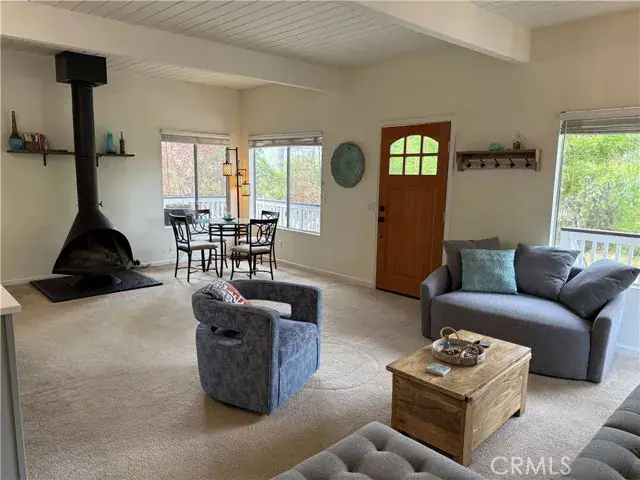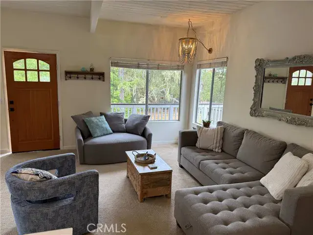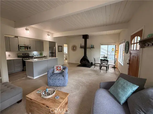 This mid-century cottage is tucked behind mature redwood trees and is located near an entrance to the Fiscalini Open Space Ranch Preserve and walking distance to the ocean. There is a large front yard which also provides off-street parking. Up a few stairs toward the front door, a wrap-around deck offers places to enjoy the sunshine, the birds or views of the local deer and turkeys! Once inside the home, you will find a large single level, open floor plan with painted wood ceilings, large picture windows and a free-standing wood fireplace. The central kitchen has solid surface quartz counters and a tile backsplash. There are two bedrooms, each with access to the wrap-around deck. Each bedroom has an en-suite bathroom. A laundry/mud room adds extra cabinetry and perhaps a place for crafts studio or office. This is a very charming Cambria cottage in a fantastic location!