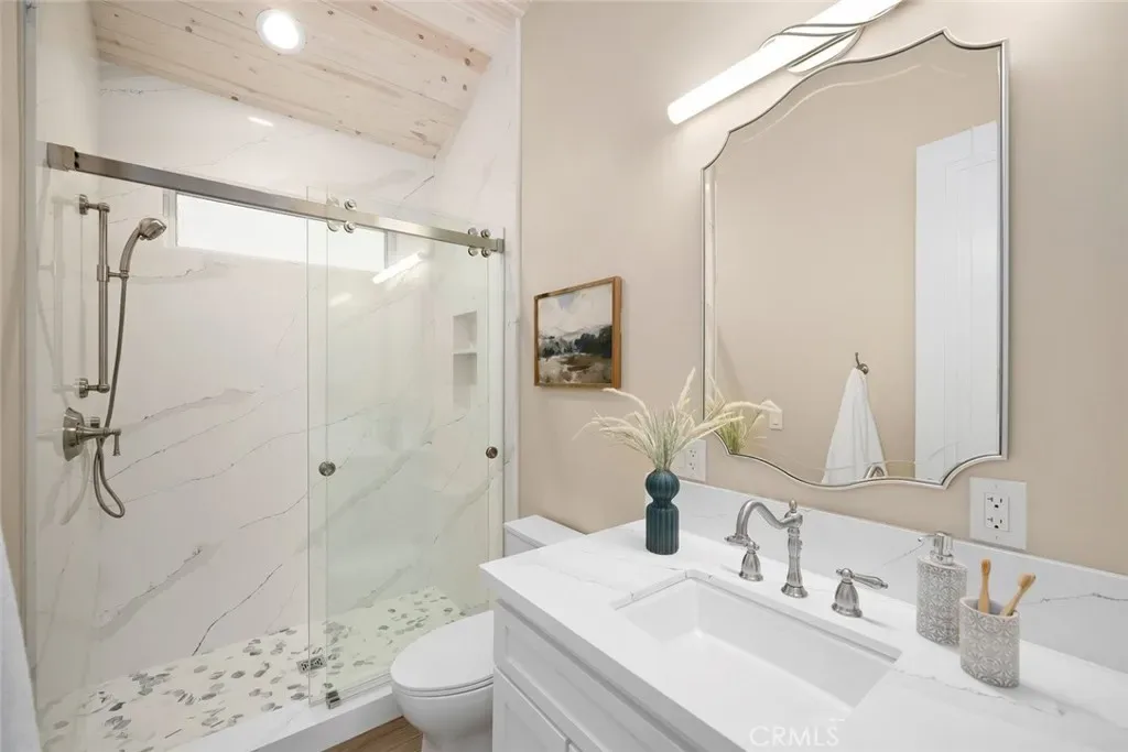 Additional highlights include a well-equipped laundry area with utility sink and storage, beautiful beamed and wood ceilings, and curated farmhouse-chic finishes throughout. Owned solar adds efficiency and long-term savings. A rarity, home is equipped with air conditioning for year-round comfort.