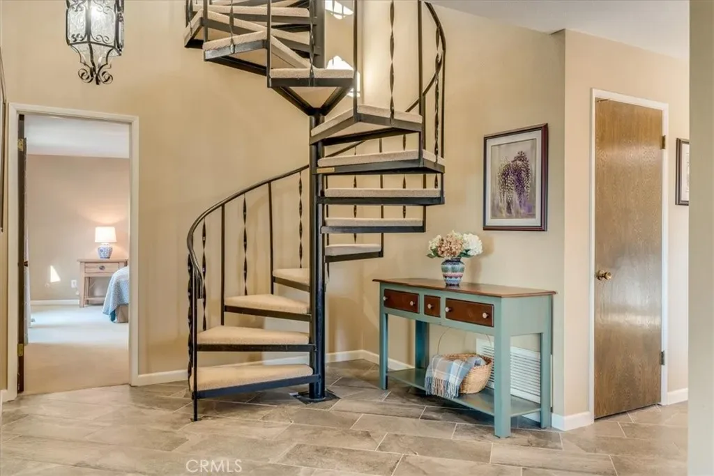 A spiral staircase leads to a unique upper lookout with 360-degree views of the Santa Lucia Mountains and the Pacific Ocean. The property also includes a greenhouse for gardening enthusiasts and a hot tub for relaxing evenings under the stars. Artistic touches throughout the home, including handcrafted fireplace mantel details and custom light globes created by artists, add warmth and character. Very well maintained and move-in ready, this special property offers comfort, views, and a distinctive coastal lifestyle.
