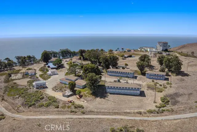 Perched high above the Pacific Ocean with sweeping, unobstructed coastal views, the former Cambria Air Force Station spans 34± acres and includes 32 existing buildings and structures — radar towers, barracks, operations facilities, and support buildings. The property also features one primary residence with 5 bedrooms, 2 bathrooms, and a kitchen equipped with granite countertops and double ovens, offering modern comfort amidst historic charm. A remarkable Cold War landmark with secure gated access, this hilltop property offers commanding presence, privacy, and boundless potential for creative redevelopment. Imagine transforming this extraordinary site into a private compound, hospitality retreat, research campus, or other visionary project (subject to county approval).