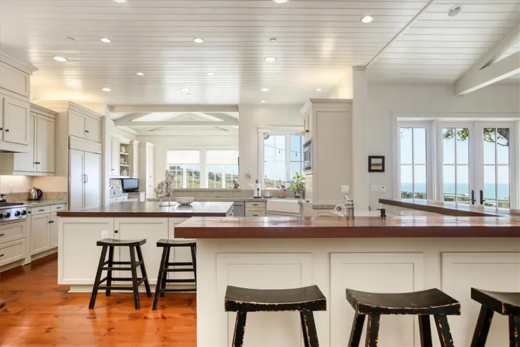Seller Financing Available: This beautifully designed Coastal French Country Residence is ideally situated on a desirable premier oversized lot. The home overlooks the Fiscalini Ranch Preserve to the unobstructed white water views of the boundless Pacific Ocean. The spacious open concept floor plan offers soaring vaulted beamed ceilings with plenty of glass to bring in abundant natural light while integrating the vast outdoor stunning ocean views. Five impeccable bedrooms, 4 baths, and 2 half baths spanning 6860 square feet all create an inviting atmosphere of pure elegance. The inviting open floor plan creates a bright and welcoming ambiance with the kitchen, dining room, and living room weaving seamlessly together to blend indoor and outdoor living. The Chef’s Kitchen is a culinary masterpiece with high-end stainless steel appliances and beautifully designed woodwork cabinetry. The attached 1 bedroom 1 bath guest house with bar area provides an additional warm and welcoming space for family and friends. Other amenities include a game room, wine cellar, large stone fireplaces, landscaped grounds with pathways, and multiple seating areas to enjoy outdoor living and entertaining with an exceptional living experience. This home is being sold with furniture included except for the owner’s personal items. From view sunrises and glorious sunsets this extraordinary property is a rare find and offers an unparalleled opportunity to enjoy the Cambria Coast at its finest.