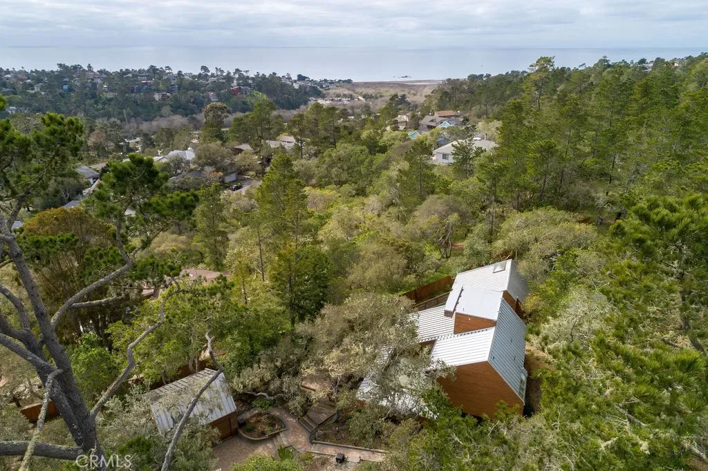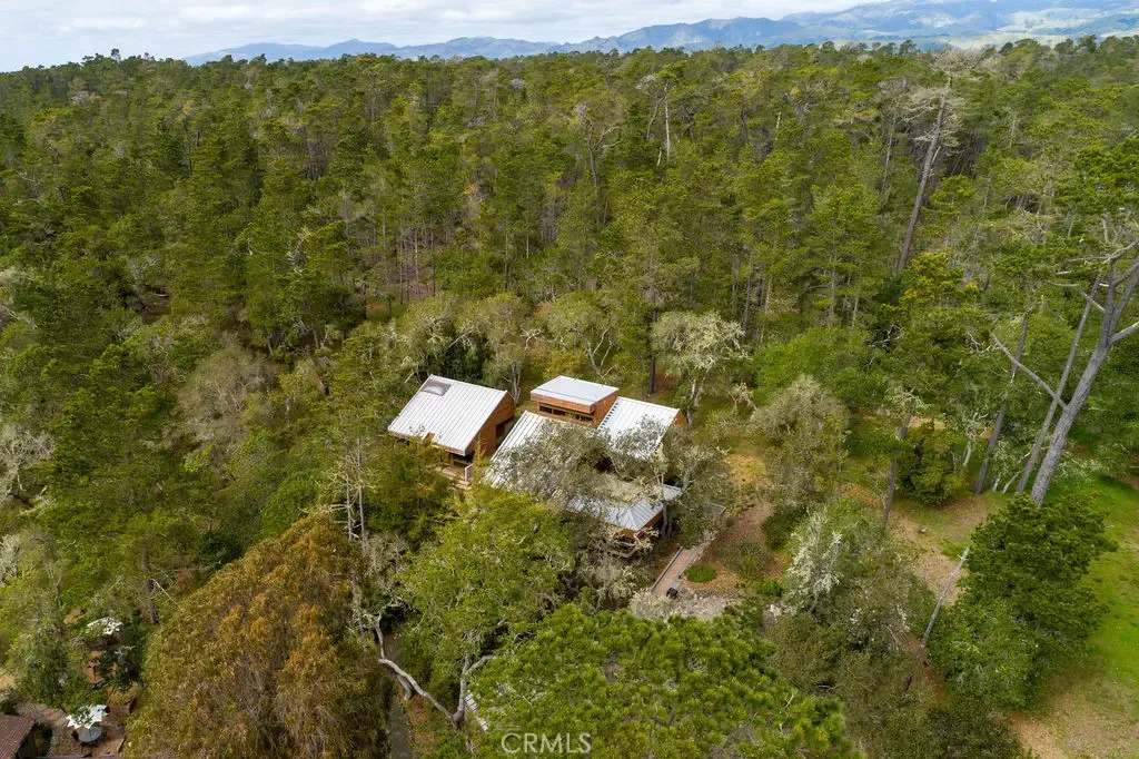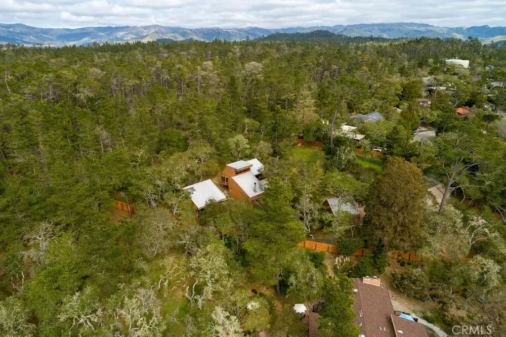 1021 Hillcrest is an architectural gem, perfectly designed for the 1+ acre site in sunny and sought after Pine Knolls, the original premier neighborhood in the seaside village of Cambria. This home features a passive solar design that incorporates Big Sur-esque exposed aggregate walls that serve as thermal mass complimenting the Douglas Fir post/beam structure. While the spaces are multi-leveled, only a few stairs separate each. Ceilings are vaulted and beamed, with skylights and windows for abundant light while feeling the outdoors mingle with your inside living. Decks provide plenty of outside living space where you can take in the awesome setting, which is not only adjacent to the approx 1,600 acre Covell Ranch, but also provides ocean views and powerful sunsets to the west! James Maul, noted Central Coast architect, designed so many features into this property, with paths and patios connecting the main home to the guest house, and the detached garage just below. The buildings are set back from the street, up the beautifully multicolored paver driveway, with extra parking areas, including RV area with hookups. The main house is loft-style one bedroom with great openness throughout, and the guest house has 2 bedrooms and a bath, also designed Maul-style with plenty of artful beam work. The two parcels total over one acre of privacy and unlimited options for your legacy property. A few minutes from the village, and a short drive to Big Sur, Paso Robles wine country, many beaches to meet your needs, and our big city of San Luis Obispo!! Call your realtor today for a private showing.