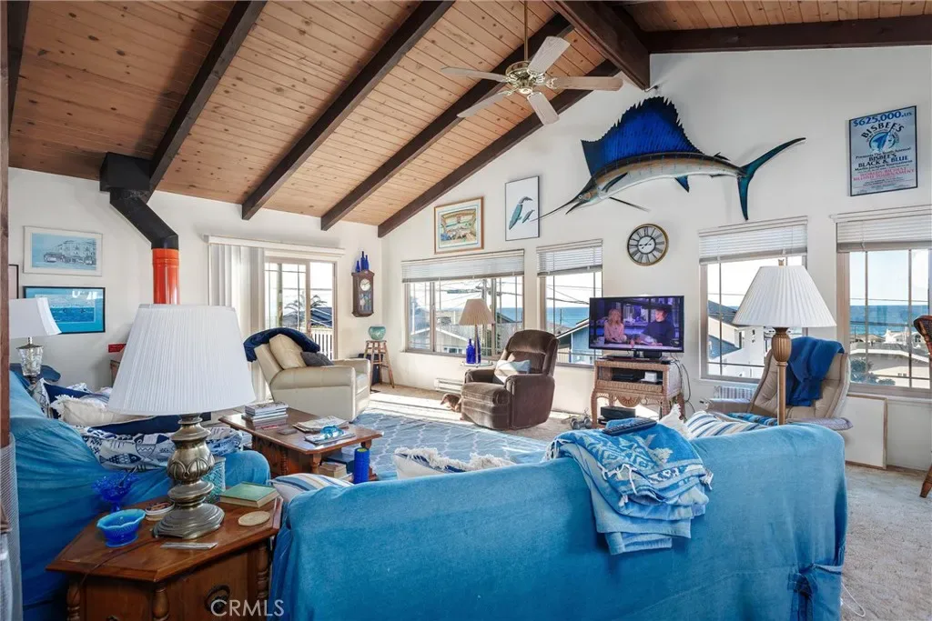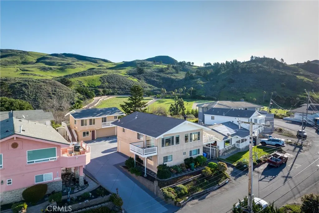 Rare Cayucos opportunity featuring two separate units, abundant parking, and an active vacation rental license, all just a short walk to town and the beach. The street-side 3BD/2BA main home offers sweeping ocean views from the upper-level great room with open-beamed ceilings and three decks—ideal for coastal living or entertaining. Set beyond a generous parking area is a detached 2BD unit with a three-room bonus space for flexible use, plus a large backyard with peaceful coastal hill views. Located on a quiet cul-de-sac with nearby coastal access stairs at 16th and 19th Streets, this property offers multiple use options and excellent income potential.