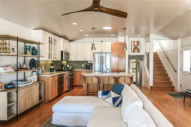Built in 1956 and meticulously maintained, the fully-furnished 1,342 square foot home blends mid-century charm with modern coastal appeal in an open, light-filled layout to maximize every ocean view. The living area has vaulted ceilings, modern décor, and expansive picture windows plus the large kitchen has been updated with sleek granite countertops and stainless-steel appliances, all flowing seamlessly into the dining spaces, perfect for casual nights in or intimate gatherings.