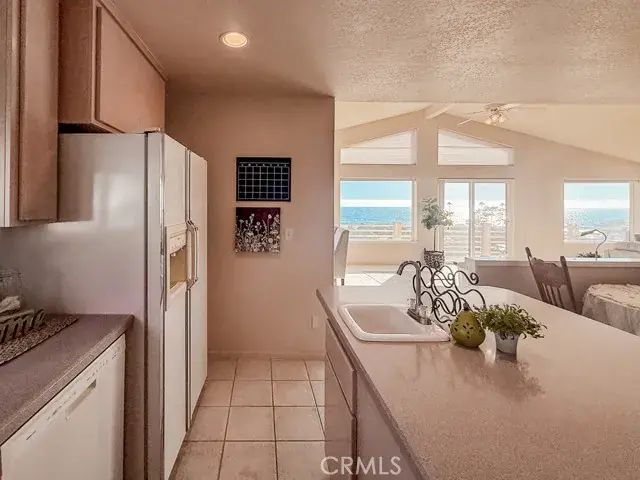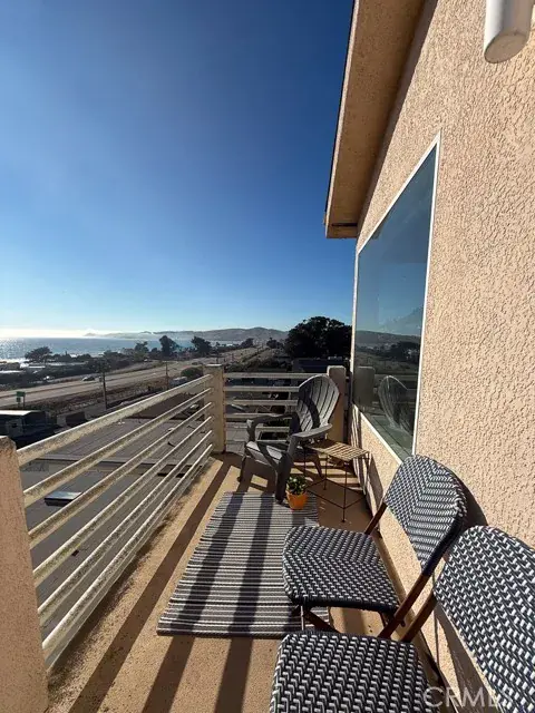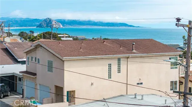 The expansive main living area on the top floor features vaulted ceilings and wall-to-wall windows that showcase the stunning ocean views of Estero Bay from Morro Rock to the Cayucos Pier and beyond. The kitchen has lots of counter space and storage, a cute breakfast nook, and large island with an adjacent dining room overlooking the ocean or mosey outside to the wide upper deck to relax during the gorgeous sunsets. Throughout the comfortable open living area you’ll find beautiful custom built-ins plus a cozy fireplace. Off the living room is the large primary bedroom ensuite with soaker tub, shower, double vanity, extra large walk-in closet, second closet, and laundry room.