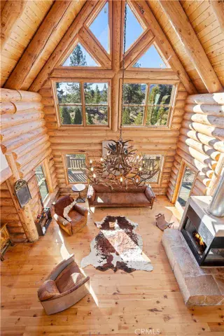 Welcome to this truly magnificent log home nestled on over 5 acres in coveted Cuddy Valley, surveying the Los Padres National Forest with panoramic views and a storied past as a Christmas tree farm, now landscaped, fenced, privately accessed, and served by a shared well; crafted with approximately 12 inch Swedish hand hewn logs, the residence showcases vaulted ceilings, an artisan log staircase, and Pella windows and doors, while an expansive wraparound deck links a covered front porch and covered side porch to an open rear deck for seamless indoor outdoor living; upon entering, a large copper topped bar anchors the gathering zone and opens to the living and dining areas beside the kitchen; the updated layout features dual primary bedrooms on the second floor with a loft between them capturing sweeping views below, and both primaries were recently remodeled to include copper bathtubs, elegant showers, and a dual sided fireplace in each, plus an additional bedroom on the upper level and flexible lofted spaces that create a clear path to configure as many as six bedrooms subject to buyer preferences and any required permits, delivering three bedrooms and four bathrooms at present; approximately 3,755 square feet comprise the main house across the two principal levels, and an additional 2,031 square feet below functions as a substantial finished retreat with multiple rooms, exterior access, and a versatile bonus area ideal for offices, workshops, a gym, media, or guest quarters; enjoy all four seasons with awesome snow in the winter, and with equestrian zoning the acreage presents excellent possibilities for a barn and arena, making this finished, meticulously crafted mountain home a rare find.