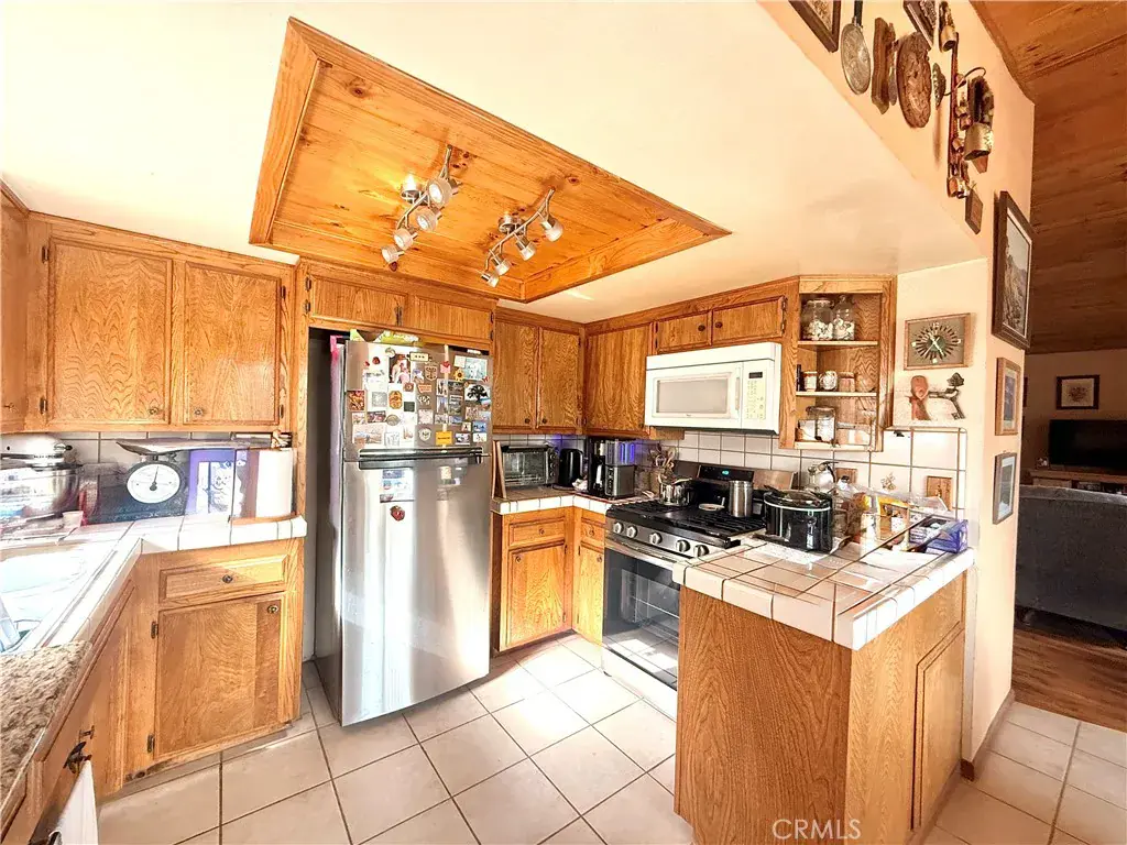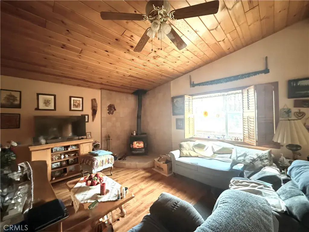 First time on the market in over 30 years! Nestled in the serene hills of Frazier Park, this charming two-story mountain retreat offers breathtaking views, and a cozy cabin feel, all while being conveniently located just under 40 miles from Santa Clarita and approximately 20 miles from the Hard Rock Casino. The main level welcomes you with a generous front porch—perfect for morning coffee while watching the sunrise. Inside, vaulted ceilings create an open and airy atmosphere, complemented by a cozy wood-burning stove in the spacious living room. The open-concept layout flows seamlessly into the dining area, featuring sliding glass doors that open to a balcony for fresh mountain air. The kitchen offers ample cabinetry and comes equipped with newer stainless-steel appliances. Ceiling fans throughout enhance comfort, and the home is filled with natural light. The main level also features a full guest bathroom with well-maintained tile, a generously sized primary bedroom with an en-suite bathroom, and a spacious guest bedroom. Abundant closet space is found throughout the hallway. The lower level offers over 500 sq ft of basement space with a private entrance—ideal for a potential ADU, guest suite, or bonus living area. This level includes a full bedroom with ample closet space, a half bath, and a well-appointed laundry room complete with newer washer and dryer, sink, counter space, and extensive storage. There is ample room to add a kitchenette if desired in the long run. Custom tile flooring, additional storage, and the water heater are also located on this level. Additional highlights include reinforced retaining cinder block walls and foundation, a full drainage system, low-maintenance exterior, garden space, gated entry, and parking for up to three vehicles. A rare opportunity with endless possibilities in a peaceful mountain setting—this is Frazier Park living at its finest.