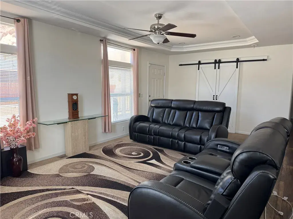 This home is located 22 minutes from the new Hard Rock Casino Tejon, 20 minutes from Tejon Pass Outlets, 35 minutes of both Bakersfield and Valencia (Santa Clarita Valley), and it’s move-in ready! This spacious double-wide Champion Home is located in the well-maintained Oakridge Mobile Home Park — with no neighbor on one side, per park management. Featuring 3 rooms (2 bedrooms and 1 office with barn doors (currently used as a bedroom), 2 bathrooms, and this home offers comfort and functionality. The open kitchen includes a large island, granite countertops, stainless steel appliances, and many updates: new gas stove and hood vent, new faucet, new bathroom sinks, freshly painted interior, and central heat and air conditioning with a new digital thermostat. Other highlights include coffered ceiling in living room, vinyl plank flooring, recessed lighting with dimmers, security door and alarm system, slow-closing toilet seats, and a dedicated laundry room. Enjoy outdoor living on the aluminum wood-covered deck and private backyard, plus a full-length awning covered carport for up to three vehicles. Park space rent includes security cameras, landscaping and sewer line maintenance.