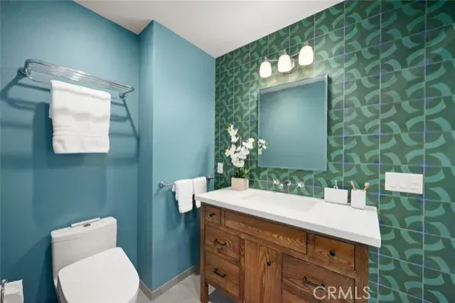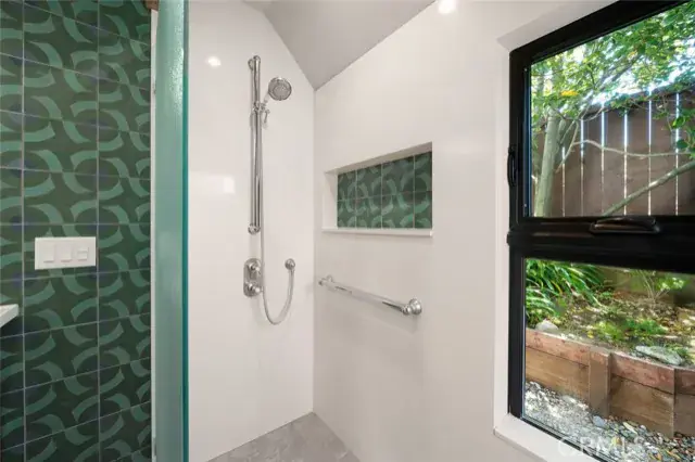 The first level is home to the serene primary suite, offering direct backyard access, a walk-in closet, and a luxurious ensuite bath with custom tilework and a walk-in shower. Two additional bedrooms and a full bathroom complete the lower floor.