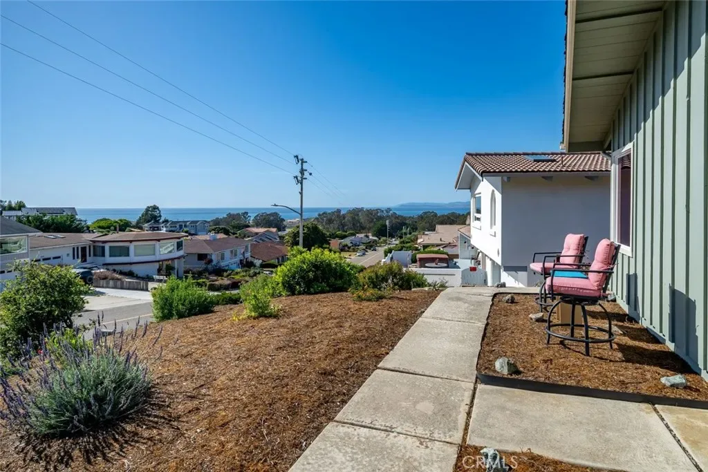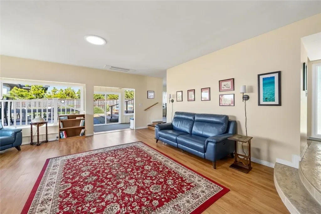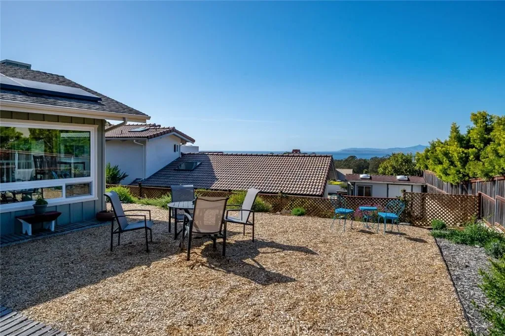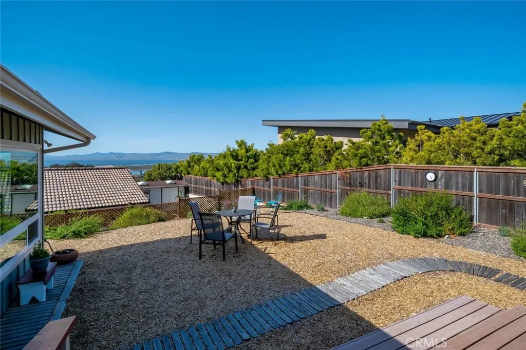 Inside, natural light takes center stage. The living room is warm and inviting, enhanced by two solar tubes and seamless flow into an adjacent interior view room—perfect for soaking in sweeping vistas of Los Osos, Morro Rock, and Estero Bay. Hard surface flooring runs throughout, complemented by upgraded LED lighting and fresh interior and exterior paint.