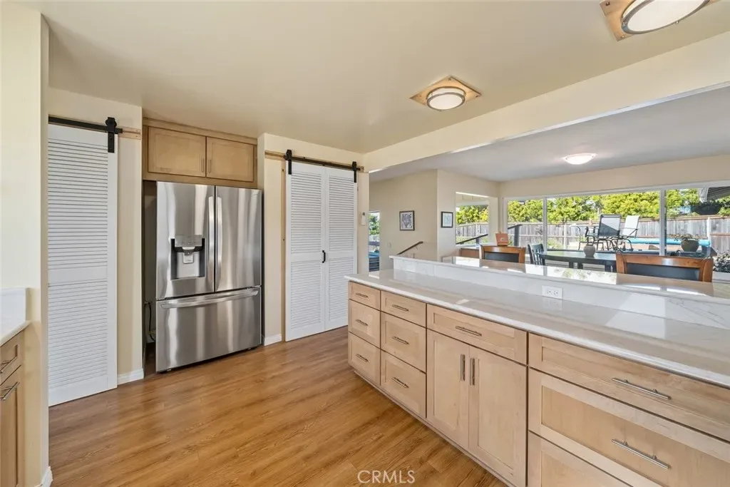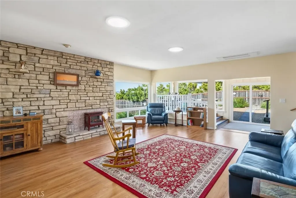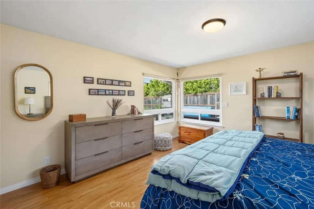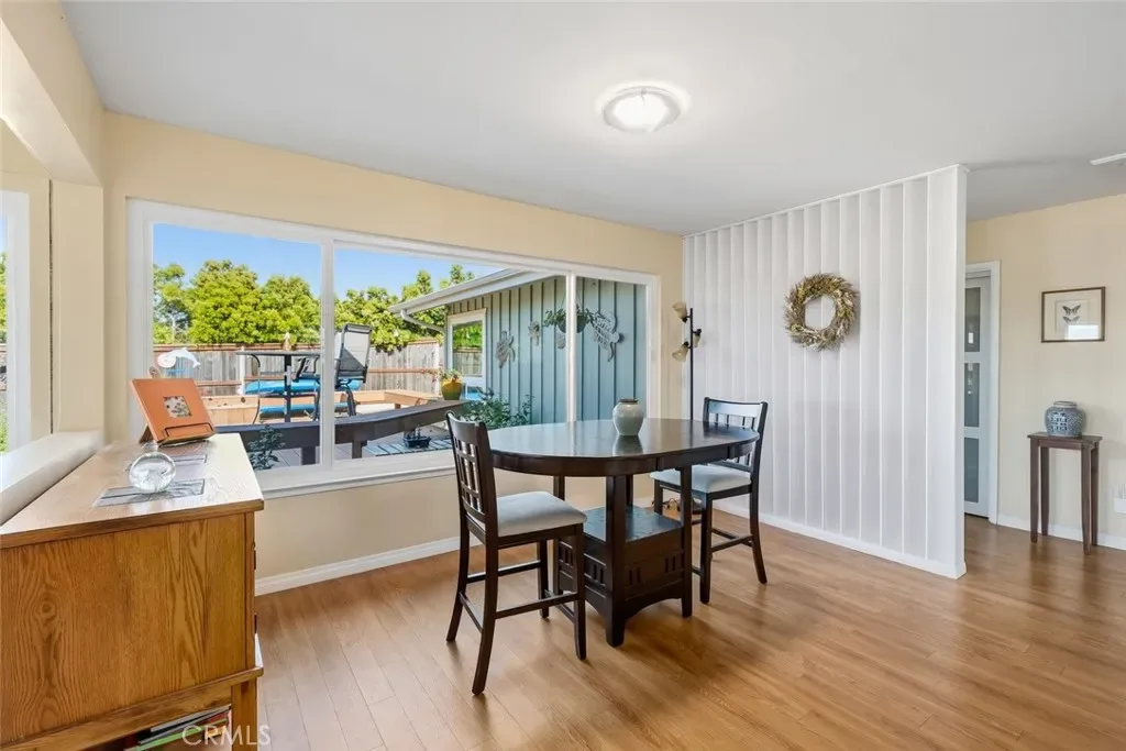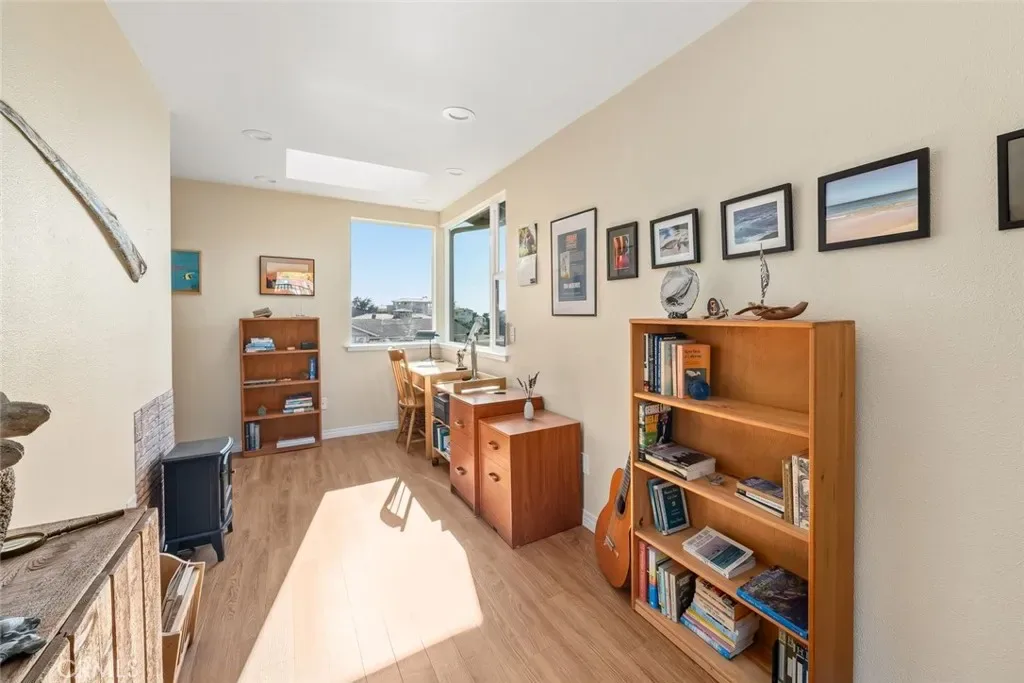 Inside, natural light takes center stage. The living room is warm and inviting, enhanced by two solar tubes and seamless flow into an adjacent interior view room—perfect for soaking in sweeping vistas of Los Osos, Morro Rock, and Estero Bay. Hard surface flooring runs throughout, complemented by upgraded LED lighting and fresh interior and exterior paint.