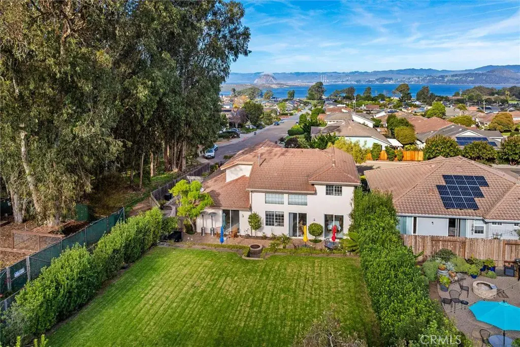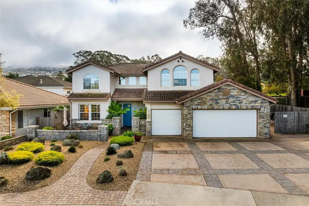 Inside, the home impresses with soaring 25-foot ceilings, in the living room, creating a dramatic yet welcoming sense of space and light. This model home was built with many high-end custom features including cabinets, granite counters, a new sub-zero refrigerator, and tiled flooring. This home also comes with two master suits, one upper with amazing Morro Rock and Bay view and a lower level with a custom high-end bathroom with a soaking tub/shower/ double vanity and a large walk-in closet. This homes thoughtfully designed layout is complemented by meticulously crafted outdoor hardscaping, a beautifully established front yard, and a vast backyard that provides endless possibilities for relaxation and entertaining your friends and many family gatherings.
