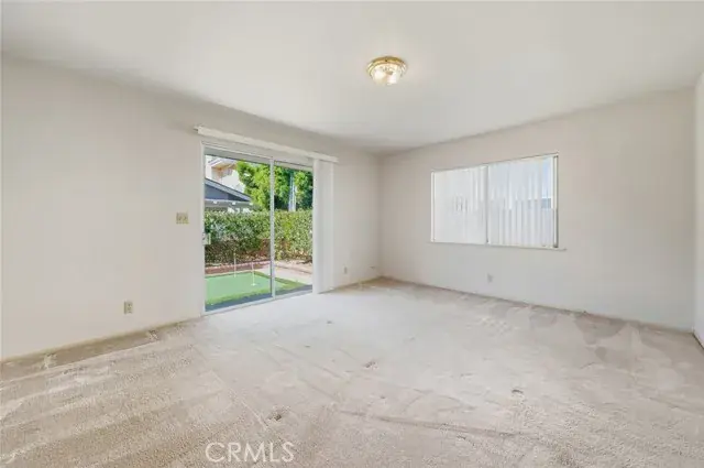 The primary suite offers direct access to the backyard and a private ensuite bathroom with a shower with tub, vanity with seating, and a spacious closet. A second bedroom also opens to the backyard and shares a beautifully appointed second bathroom with built-in storage and linen closet. A third bedroom adds additional versatility.