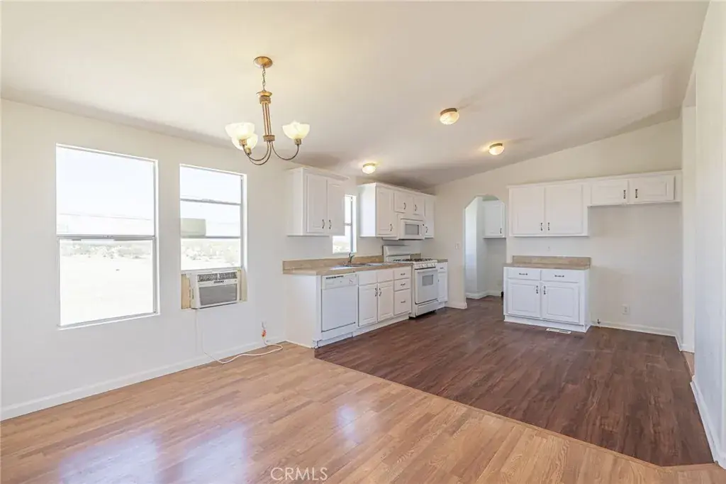 This single story manufactured home located at the gateway to the Sierra Mountains has been completely repainted exterior, interior, all new flooring, a very private separated floor plan with primary bedroom and bathroom on one wing. The Kitchen has white painted cabinets with brush nickel pulls, white appliance. There’s an indoor laundry room, vaulted ceilings, recessed lighting, separate detached two-car garage. There are nice patio decks on the front and the rear of the home. Views of the mountains. Easy access to Freeway 14 Hwy 59 & Hwy 395 near Mojave Airport and Edwards Air Force Base