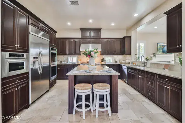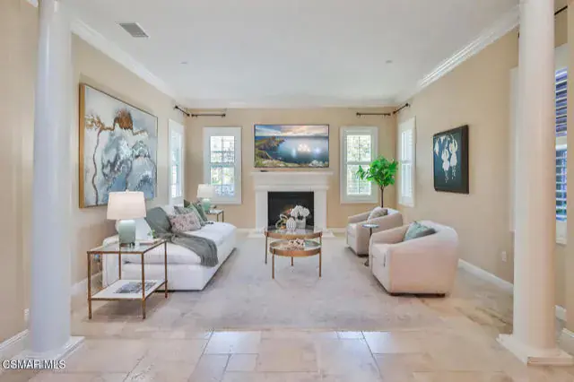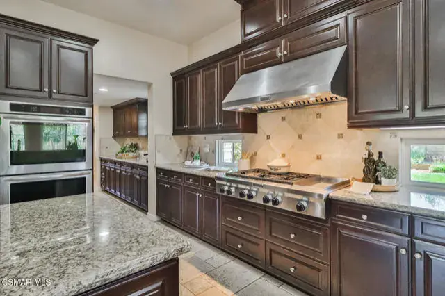 Welcome to this stunning French Provincial Estate in the exclusive gated Pinnacle Highlands. Situated on a generous 30,027 sq. ft. lot backing to open space, this exquisite 4,364 sq. ft. residence offers 5 bedrooms, 5.5 baths, plus a versatile loft with a private balcony. Featuring a bright open floor plan with impeccably finished Versailles stone and tiger hardwood flooring throughout, this home offers both elegance and functionality. As you enter home through the paved-tiled walkway, you are greeted by an abundance of living spaces including an elegant living room with a fireplace, formal dining room, gourmet kitchen, and spacious family room with serene views of the lush yard and the open space. The kitchen showcases granite countertops, an expansive center island, upgraded stainless steel appliances including a built-in refrigerator, a butler’s pantry, wine closet, and a sunny breakfast room. Upstairs, The luxurious primary suite boasts unobstructive hills views, dual closets, a soaking tub, a walk-in shower and marble countertops. A secondary master suite includes its own private bath, walk-in closet, and Juliet balcony. Step outside to an entertainer’s dream yard with a covered patio, lush green lawn, a variety of fruit trees such as lemon, apple, and fig, and a tranquil view of the hills – perfect for relaxing or hosting guests. Additional highlights include a 3-car garage with storage, solar system, crown moldings, plantation shutters, paver-tiled driveway, and no Mello-Roos. Desirably located near the adjacent 7-acre community park with tennis and basketball courts, schools, dining, shopping and freeway. This home is a must see!
