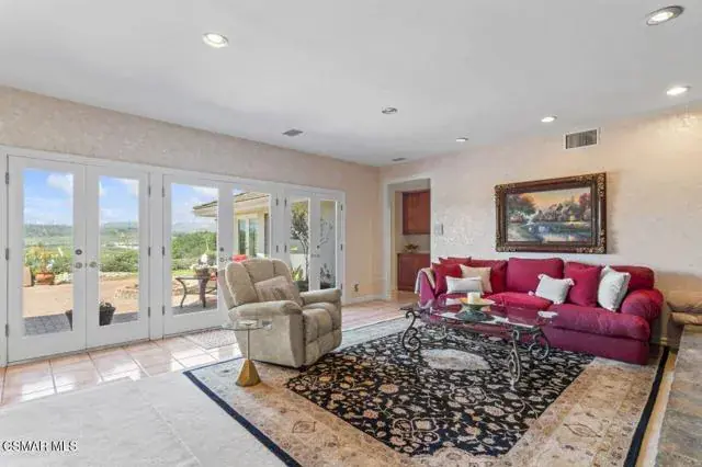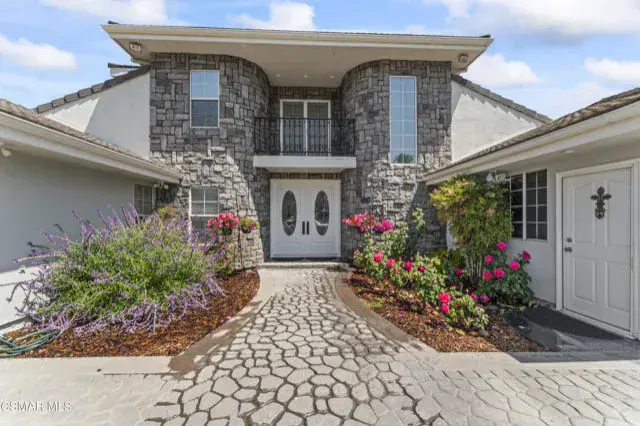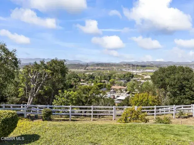Custom Built Estate with Views, Luxury Upgrades & Expansive Grounds on zoned HORSE PROPERTY – Experience the perfect blend of rural charm and refined living at this stunning custom estate, located in the unincorporated hills of Ventura County, just outside the City of Moorpark. Built in 1992 and thoughtfully updated, this 3,838 sq ft residence sits on a generous 29,054 sq ft equestrian-zoned lot, offering breathtaking views, luxurious features, and exceptional indoor-outdoor living. The main level boasts three spacious bedrooms, 3.25 bathrooms, a formal dining room, home office, laundry room, and a bright eat-in kitchen with double sink and a single sink island with Sub-Zero Refrigeration. A private self contained in-law suite with its own entrance is ideal for guests or multigenerational living. The living room and oversized third bedroom open to a multi-tiered backyard through a full wall of Glass French doors, revealing sweeping valley views. Upstairs, the expansive primary suite includes a sitting area with small balcony, three-sided gas fireplace, high ceilings, and its own full length balcony accessed via another wall of French glass doors. The spa-like en-suite features a steam shower, dual vanities, cedar-lined and walk-in closets, and a laundry chute for convenience.Additional features include:Three-car garageCentral vacuum systemThree brand-new HVAC systems for zoned comfortFire pit and built-in BBQ island, perfect for entertainingAbundant fruit and avocado treesRoom for horses or personalized additions thanks to equestrian RE 20 zoningThis is a rare opportunity to own a private estate with premium upgrades, panoramic views, and versatile space–all just minutes from Moorpark’s schools, shops, and freeway access.