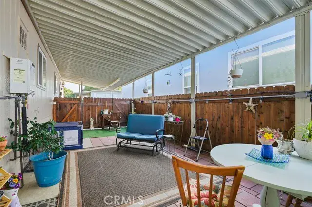 Recent upgrades add peace of mind and lasting value, including newer windows, newer roof, newer cement board siding, fresh exterior paint, and full tenting (2022–2023). The patio opens to fit two vehicles, a boat, or a golf cart, offering flexibility for coastal living. A large walk-in storage shed makes a great hobby space, workshop, or retreat. Inside, you’ll find central heat, ceiling fans, a window A/C in the living room, a tankless hot water heater, and a luxurious walk-in spa shower/tub—designed for comfort and ease. The fenced backyard features a garden area and dog-friendly space. Washer, dryer, and refrigerator are included, making this home truly move-in ready. Space rent for new buyer is $1199/mo. Utilities, and trash are invoiced monthly. Buyer to apply for residency with the park.