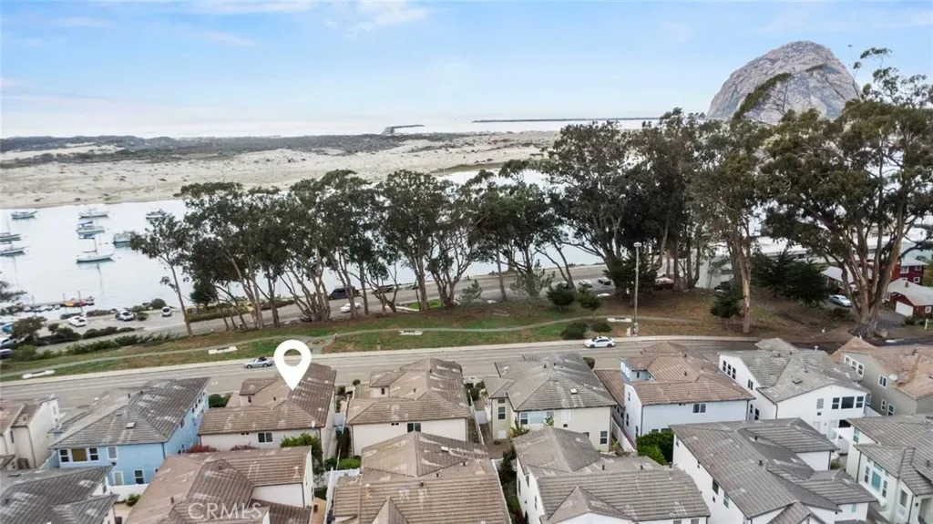 Discover the epitome of coastal elegance in this stunning 2-story home, boasting breathtaking views of Morro Rock and the bay right across the street, conveniently situated opposite a park for endless outdoor enjoyment, and just a short walk to Main Street, Morro Bay where you’ll find a variety of restaurants and shops to savor. The main level invites gatherings with two spacious living rooms: a formal living room featuring a grand picture window framing those Bay and Morro Rock vistas, and a cozy family room anchored by a double-sided fireplace that seamlessly warms the adjacent formal dining room, which is enhanced by subtle mood lighting in the ceiling molding. Entertain in style in the gourmet kitchen, showcasing granite countertops, white cabinets, a 5-burner gas cooktop, double ovens, microwave, under-cabinet lighting, recessed lighting, and a convenient center island. A well-appointed half bath downstairs. The laundry room with a sink and window adds practicality downstairs, complemented by a central vacuum system for effortless maintenance throughout the home. Ascend the hardwood stairs to a landing with built-in cabinets, leading to three bedrooms, including a luxurious master suite with a large sitting area, private balcony overlooking the iconic Morro Rock and Bay, and an opulent master bath offering dual vanities, jetted soaking tub, separate shower, private water closet, and expansive walk-in closet. The upstairs also includes two guest bedrooms with a connected bath featuring a tub/shower combo. Outside, enjoy a private, lush backyard and a 2-car garage with cabinets, making this home a perfect blend of comfort, luxury, and prime location.